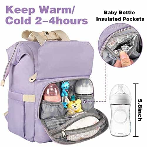 2. Compartimento de bolsillos aislados. Las mochilas de pañales para bebés con bolsillos aislados para biberones pueden contener 2 biberones para bebés (5.8 pulgadas). Podría mantener caliente o frío unos 2-4h, es un gran diseño para que tu bebé no beba leche fría. Entonces no tienes que preocuparte por que tu bebé beba leche fría. La mochila de pañales para bebé también tiene 2 bolsillos para cucharas, y el compartimento de las bolsas de pañales para la mochila también podría poner bocadillos para el bebé y el chupete para agarra fácilmente. La mochila de pañales para mamá satisface las necesidades del bebé.