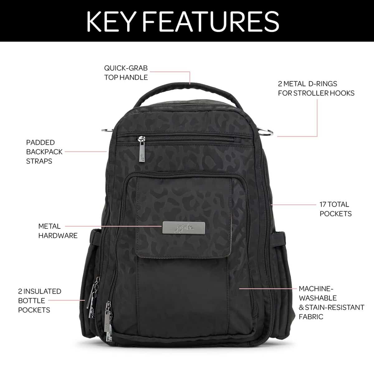 Bolso de pañales JuJuBe, Mochila de viaje -k – Negro