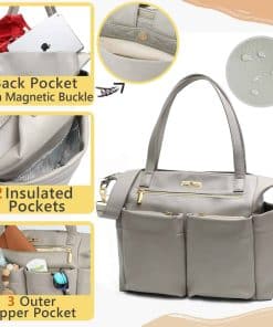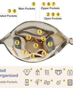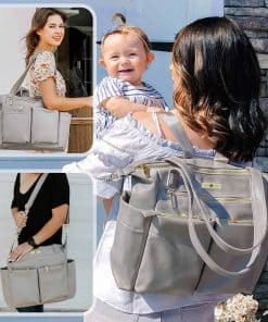 Elegante, el Bolso de Pañales Diseñador Miss Fong demuestra que el sentido práctico de una madre y su sentido de la moda pueden combinarse perfectamente en uno solo. Quisimos crear algo que se viera y se sintiera más como un bolso de moda y elegante que como un bolso de pañales tradicional. Práctico Cuando estás en misión por la ciudad con tu bebé, siempre tienes que llevar muchas cosas y esta mochila de pañales cabe fácilmente todos tus elementos esenciales para bebés. para evitar llevar demasiadas cosas, el bolso cuenta con un estuche para toallitas y una bolsa aislada para botellas. Confortable Con la opción de una correa para el hombro ajustable, asas cortas, así como correas para carriola, ¡llevar esto contigo en movimiento es pan comido! Buena relación calidad-precio – Bolso de pañales único en diseño de alta calidad de cuero ecológico. Espacioso – Con 11 bolsillos, 4 bolsillos exteriores, 7 bolsillos interiores, este es uno de los bolsos de pañales para bebés más grandes y espaciosos del mercado sin ser demasiado voluminoso. Seguro – El compartimento principal interior, así como los 2 bolsillos exteriores delanteros, tienen cierres de cremallera seguros. Entonces, ¿Qué hace que el Bolso de Pañales Miss Fong sea tan especial? Lo suficientemente grande como para sentirse como un bolso tote, cómodo como para sentirse como una mochila y elegante como para sentirse como un bolso de diseñador. Suficiente espacio para llevar todos tus elementos esenciales cuando estás fuera e incluso lo suficientemente grande si tienes gemelos. Cree en ti misma y aún puedes ser picante, a la moda y segura después de tener un bebé.