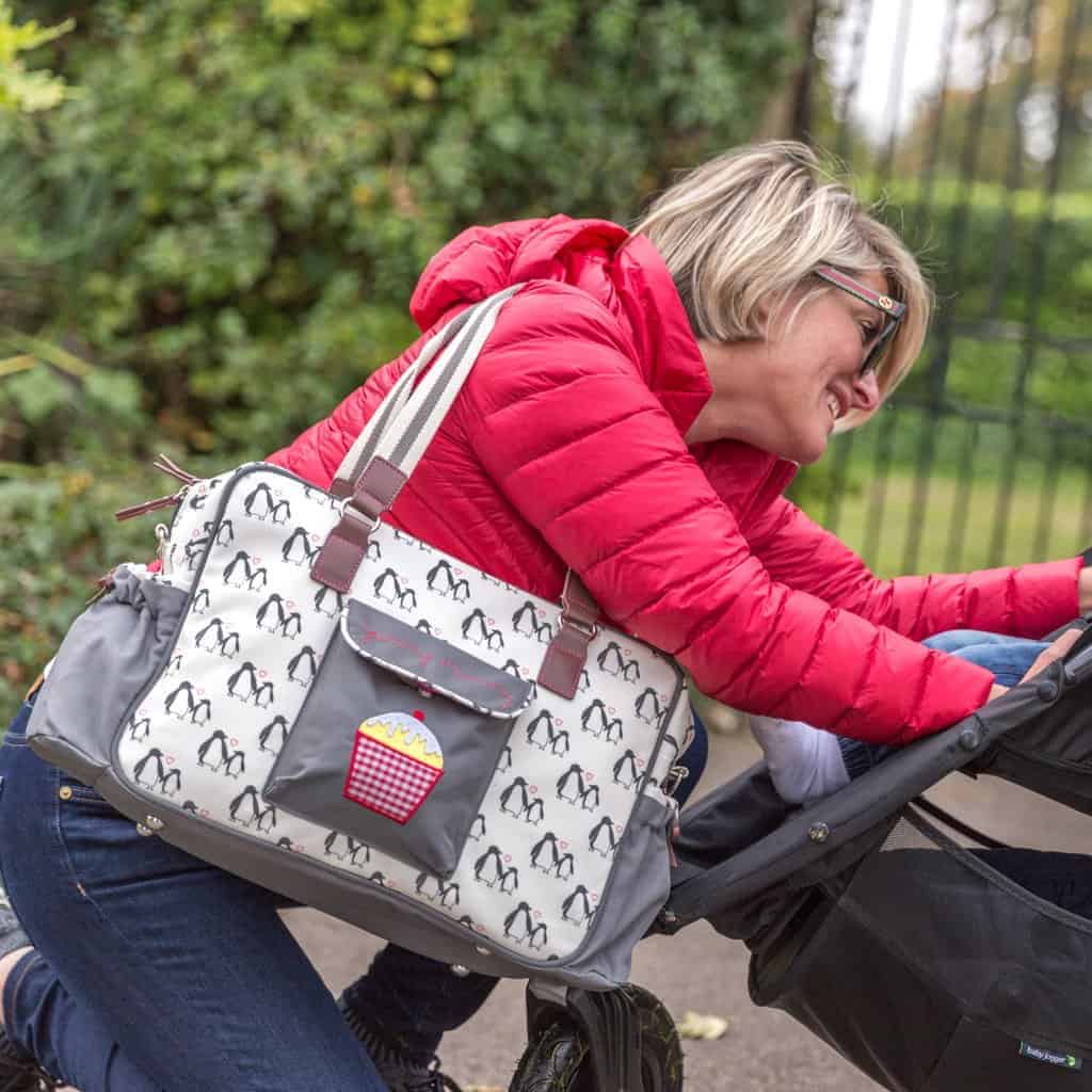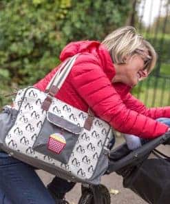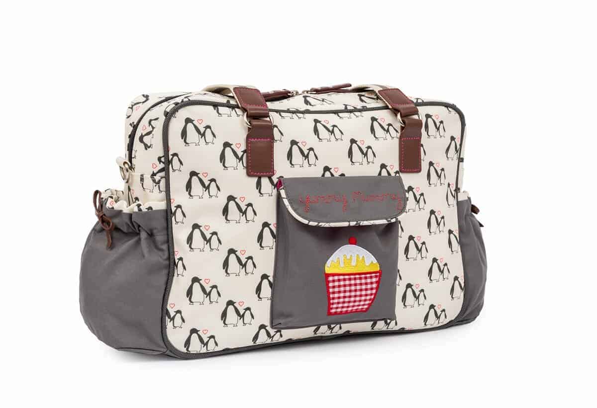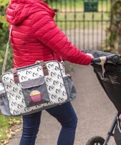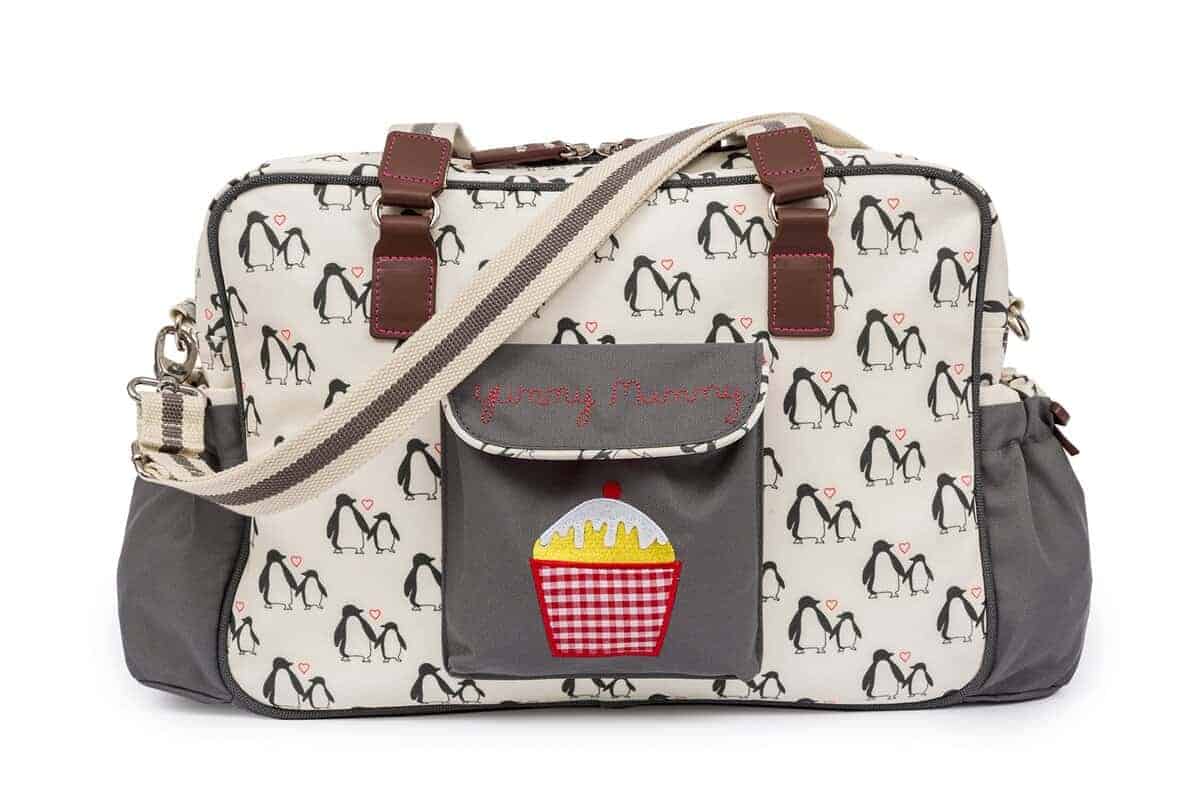 El bolso cambiador Yummy Mummy es bonito y funcional. Un interior bien diseñado se complementa en el exterior con un estampado bonito y un vibrante bordado con el diseño de la firma de un pastel con el eslogan de Yummy Mummy en el bolsillo delantero, 2 bolsillos laterales adicionales están rematados con lazos bonitos. Prácticas asas tipo tote aseguran que este bolso de diseñador sea realmente conveniente para usar todos los días.