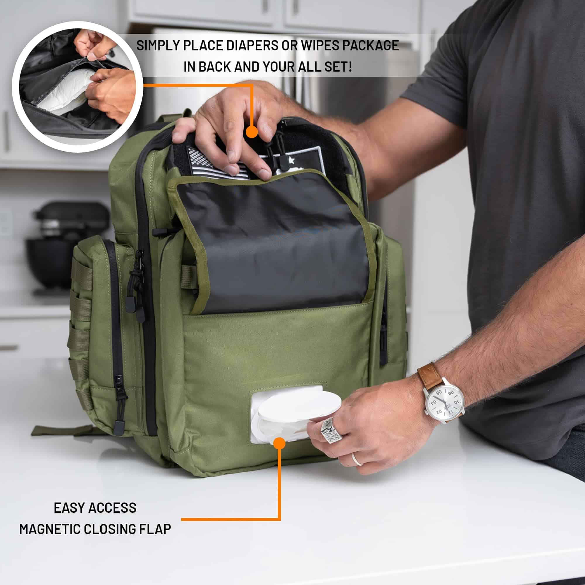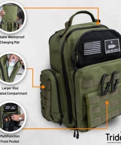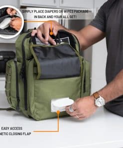 Con el bolso de pañales para papá en color verde, estarás listo para enfrentar cualquier desafío que te depare la paternidad. ¡Consíguelo hoy y descubre la comodidad y versatilidad que puede ofrecer este bolso de pañales de alta calidad!