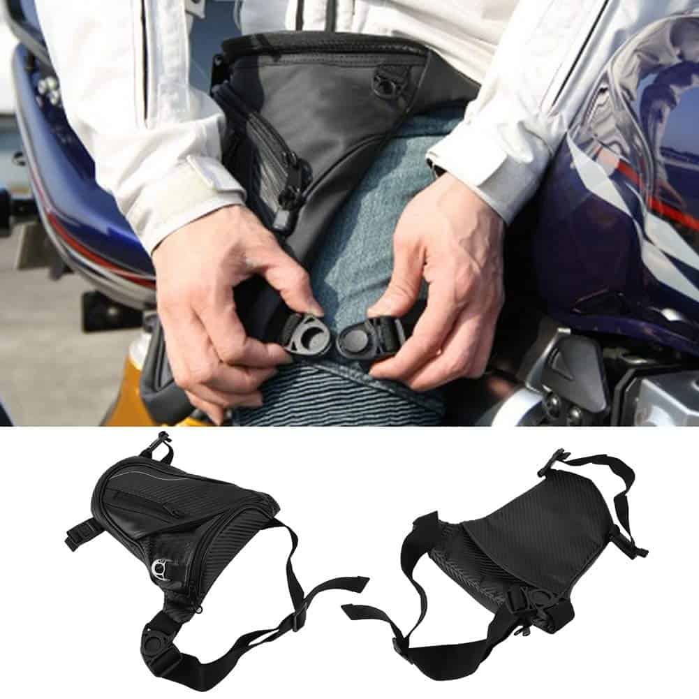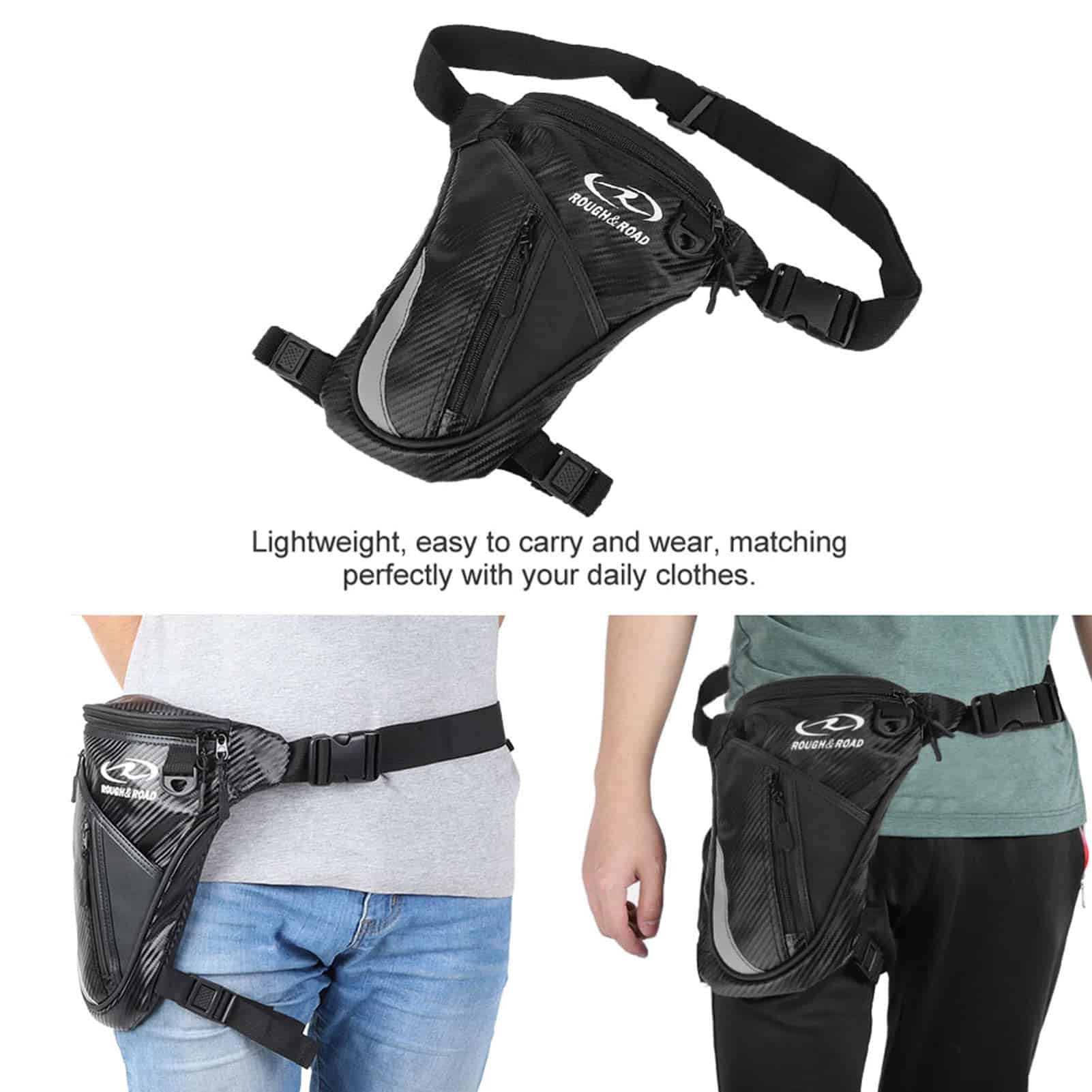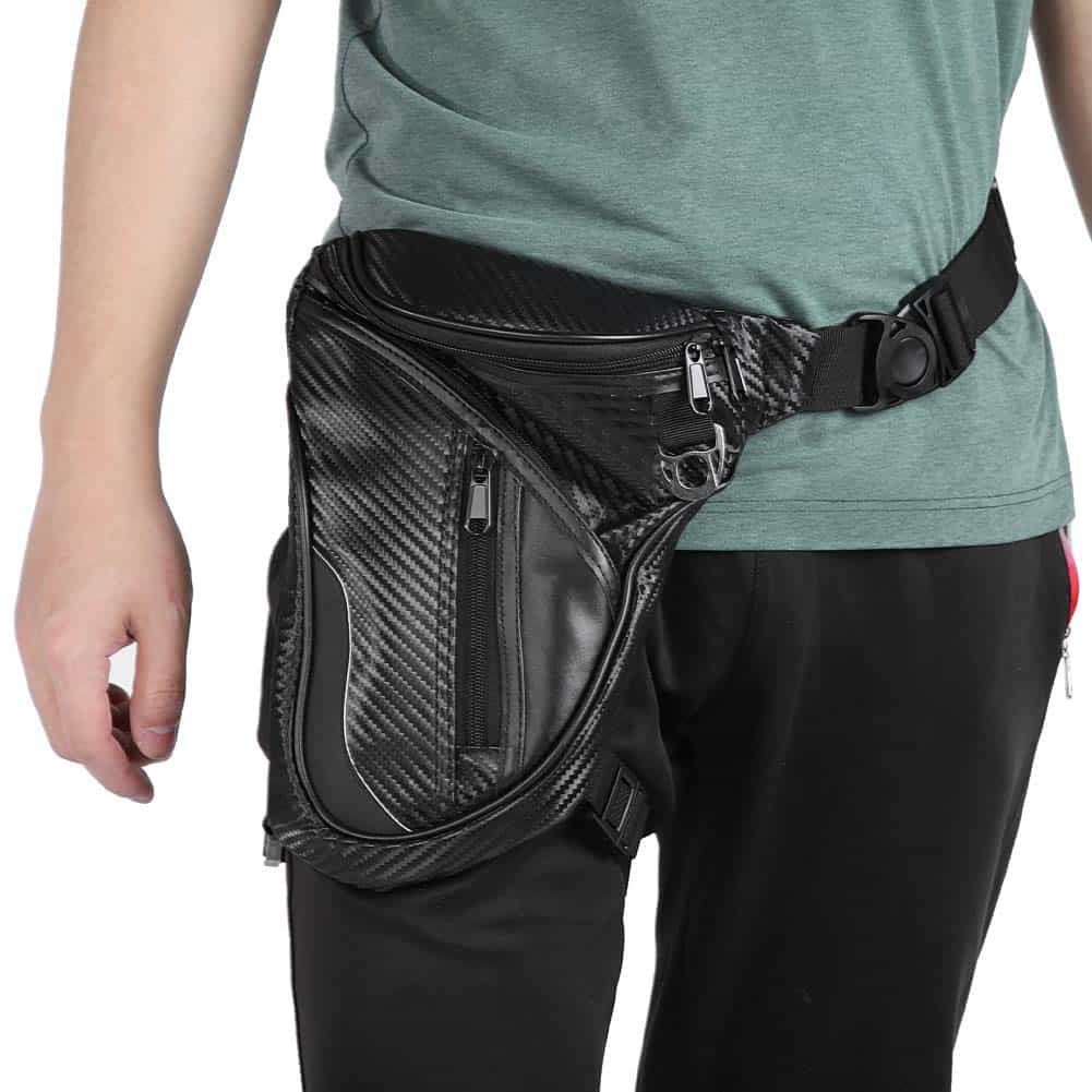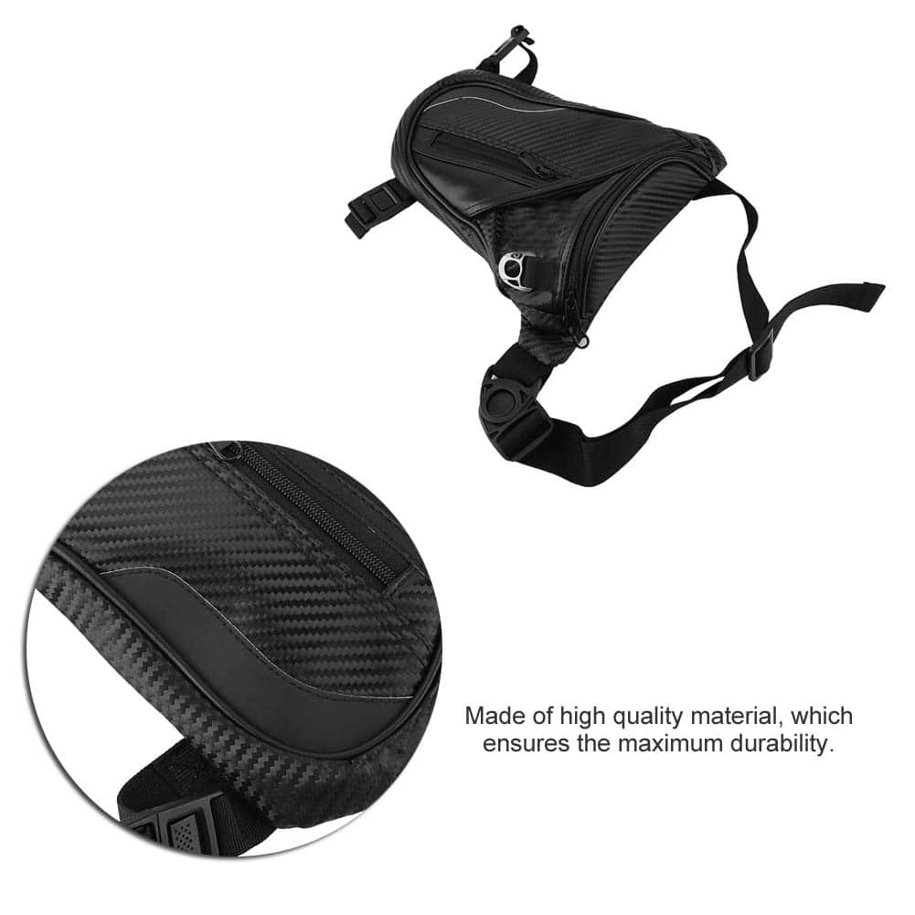 2. Material —- El bolso de pierna está hecho de material premium de imitación de fibra de carbono con características y rendimiento excelentes.