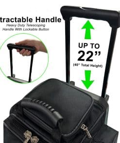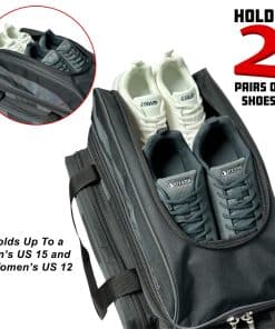 El bolso de ruedas doble Deluxe Pyramid Path Pro ofrece el mejor bolso al mejor precio de la industria. No importa que nivel de habilidad tengas, la línea Pyramid Path te ofrece calidad, rendimiento y precios asequibles. ¡Elige tu camino! Bolso de bolos de dos bolas Construcción duradera de poliéster oxford de 600 denier Ruedas de goma anchas de 3 3/4″ para una mejor maniobrabilidad Duradera base de plástico moldeado PCP Asa cuadrada extensible de 22″ con bloqueo – 5 1/2″ más larga para un fácil transporte (altura total del asa de 40″) (2) Bolsillos de gran tamaño para accesorios (2) Compartimentos de almacenamiento interiores con cierre para guardar objetos personales en una ubicación más segura (con clip para llaves) Compartimento de almacenamiento de zapatos separado que almacena y protege zapatos hasta talla 16 de hombre (Puede alojar también 2 pares de zapatos – hasta talla 15 de hombre y talla 12 de mujer) Dimensiones (L: 22″) (A: 18″) (An: 14.5″)