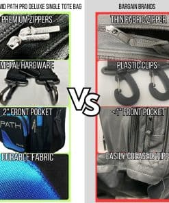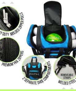 1. Bolso de un solo asa Deluxe – Cuerpo negro con detalle en color Azul Asgard. 2. Construcción de 600/840 Denier – Duradero y vibrante. 3. Correa acolchada ajustable con construcción de acero soldado, asas de nylon tejido, tiradores de cremallera personalizados, Copa de balón de poliuretano diseñada para comodidad, utilidad y estilo. 4. Bolsillos laterales extragrandes caben zapatos de hasta talla 15 de hombre. 5. Dimensiones: (L: 14″) (W: 11″) (H: 13″) – Portátil, cabe fácilmente en el vehículo y en el armario para balones.