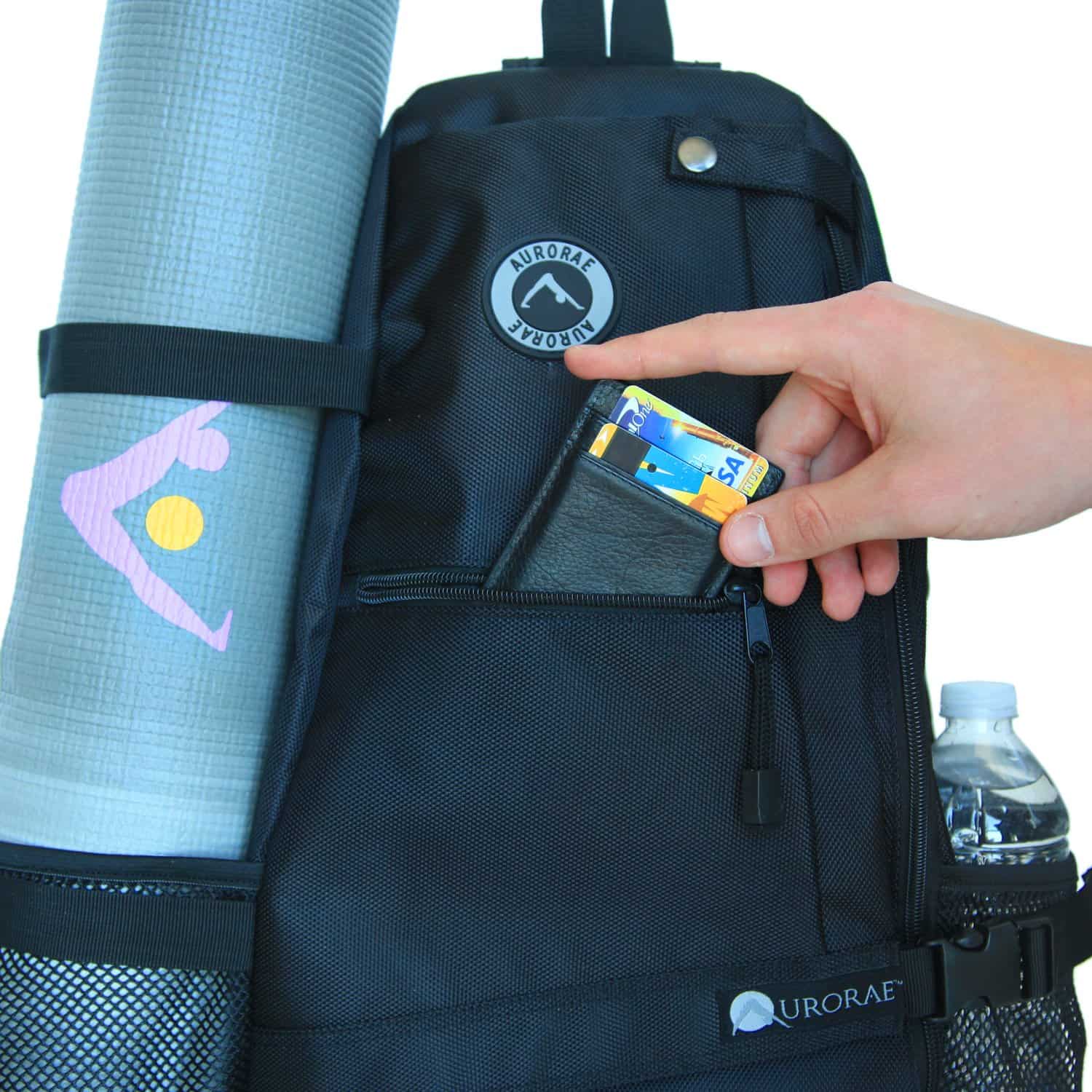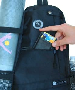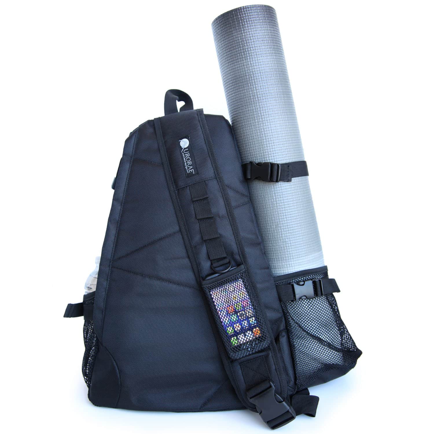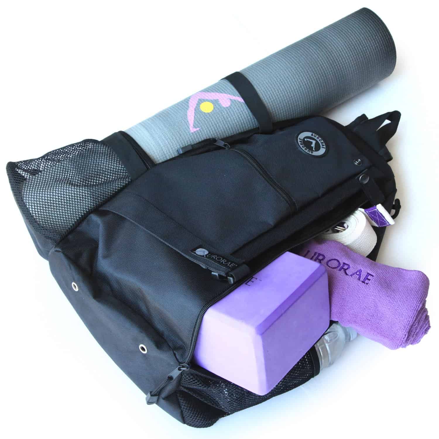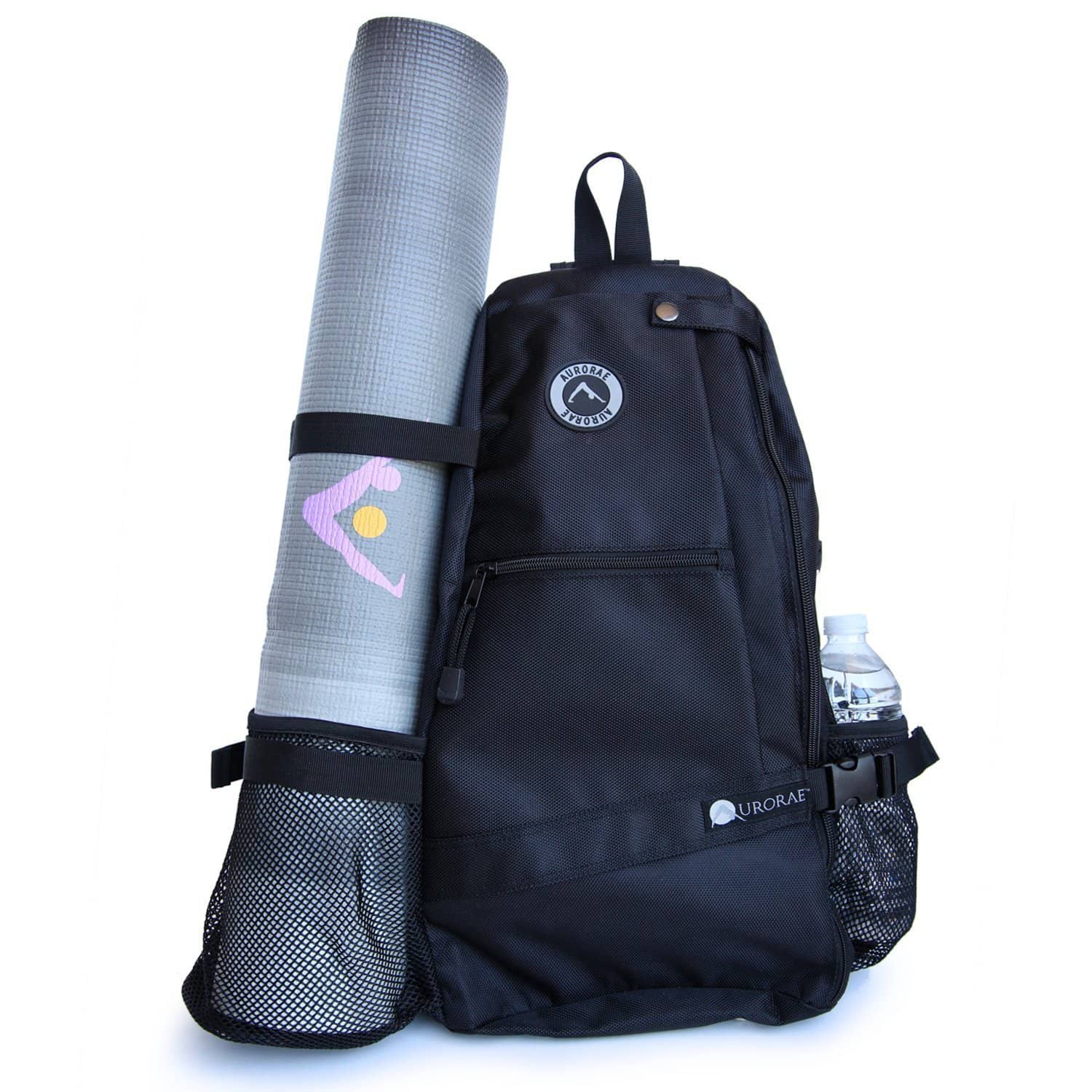 El Bolso para Esterilla de Yoga Aurorae está hecho con poliéster resistente y duradero y cuenta con un Sistema de Bloqueo de Esterilla especializado que sostiene de manera segura la mayoría de las esterillas de yoga de 4 libras o menos de manera efectiva. Las esterillas no deben ser más gruesas de 1/4 y tener 72 pulgadas de largo.