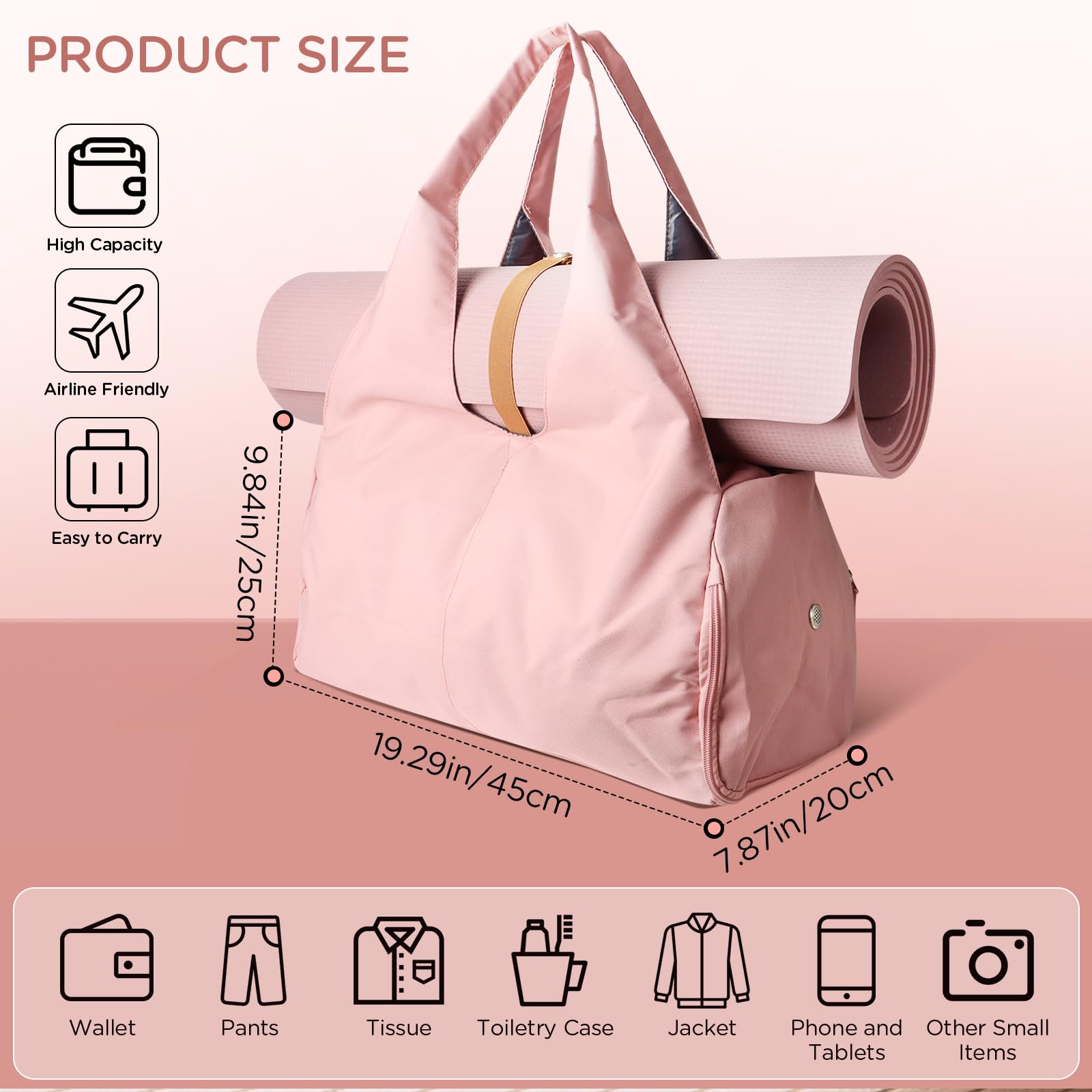 Perfecto para clases de yoga, entrenamientos de gimnasio, parque de playa y viajes, este bolso de gimnasio de tela Oxford resistente es un artículo esencial para mujeres activas. Su tono sencillo lo hace adecuado para cualquier ocasión. Características: Amplias bolsas de yoga estándar para la mayoría de tapetes, diseño de correa ajustable para facilitar el transporte, bolsa de fin de semana separada en seco y húmedo, material resistente al agua de alta densidad que le ayuda a separar los artículos secos de los húmedos, compartimento independiente para zapatos en el costado, con orificios de ventilación para mantener los zapatos, toallas o ropa secos en la bolsa deportiva de gimnasio, numerosos bolsillos en el interior, y capacidad de asegurar su teléfono celular, billetera, auriculares, llaves, identificaciones, material de alta calidad resistente Oxford, construcción robusta de alta calidad y practicidad. Especificación: Material: Tela Oxford, Color: Como se muestra, Tamaño: Como se muestra, Peso del paquete: Aproximadamente 0,43 KG / 0,94 LB. Consejos: Por favor permita 1-2 CM o 0,39-0,78 pulgadas o 0,01-0,03 KG o 0,02-0,06 LB de diferencia debido a la medición manual. Por favor permita una ligera diferencia de color debido al monitor. Paquete: 1 X Bolsa de yoga. Tenemos una fuerte garantía, proporcionaremos el mejor servicio para usted.