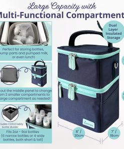 El enfriador COOL de Luxuroo es multiusos, con compartimentos duales que se adaptan a todas las tallas de botellas, piezas de extracción y leche extraída. Con unas dimensiones de 8″ de ancho x 7″ de profundidad x 11″ de altura, el COOL cabe perfectamente en la mayoría de las bolsas de extracción de leche estándar. Además, es flexible para tus necesidades, permitiéndote usar una o múltiples capas gracias al panel central con cremallera que se puede abrir parcialmente para proporcionar altura adicional y almacenar botellas altas mientras se mantienen los dos compartimentos separados.