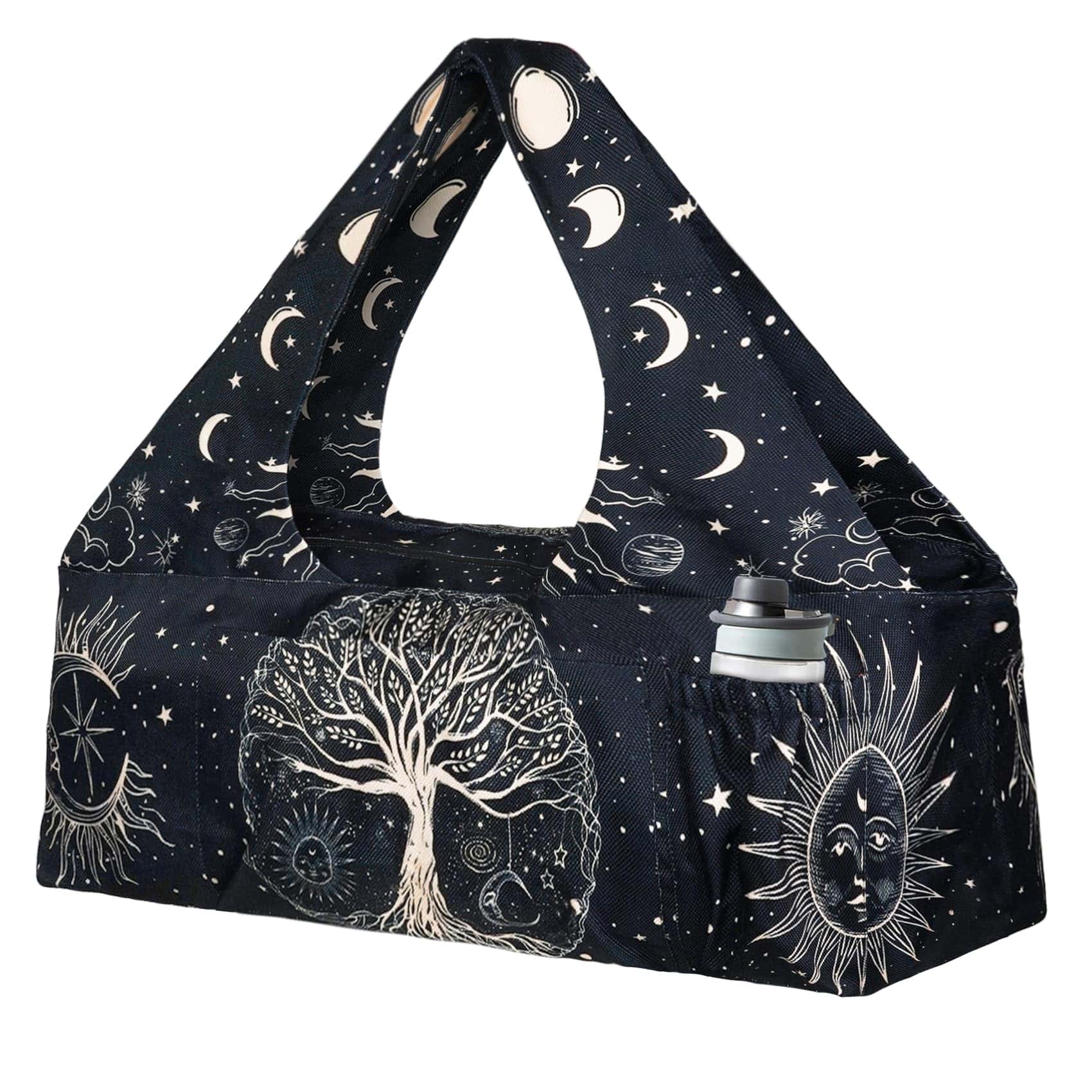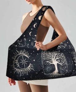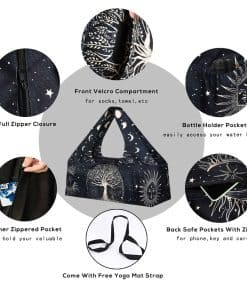 Hecho de lino de poliéster de alta calidad, este bolso de hombro para yoga te acompañará en muchos entrenamientos en un futuro próximo. El TAMAÑO MÁS AMPLIO y la CORREA MÁS LARGA lo harían muy fácil de llevar, sin cansar tus brazos y hombros. Puede soportar hasta 22 libras (10 kg) fácilmente. Fácil de limpiar y plegar para guardarlo. Viene con un transportador de yoga ajustable de $6.99. El bolso para colchoneta de yoga mide 30″x9″x11″. Compartimento principal diseñado con cierre de cremallera completo en la parte superior. 1 bolsillo grande exterior (13.8″x8.2″) con velcro que permite acceder fácilmente a tus audífonos, banco de energía, gafas de sol y más. 2 bolsillos seguros con cremallera (8″x5″) en la parte trasera y 1 pequeño bolsillo interior con cremallera para llaves, cartera, tarjetas, teléfono y más, mantiene tus objetos de valor seguros. 1 soporte para botella (5″x8.2″), es fácil de poner tu botella deportiva grande dentro. El transportador de colchoneta de yoga grande tiene mucho espacio para guardar todo tu equipo de yoga, como 2 colchonetas de yoga, 2 bloques de yoga, almohadas de yoga, toalla de yoga, botella de agua, toallas, sandalias, o incluso un cambio de ropa después de hacer ejercicio y más. Compatible con la mayoría de las colchonetas, como colchonetas de 3mm/4mm/5mm/6mm/10mm. Con las verdaderas necesidades de los yoguis en mente, este bolso de colchoneta de yoga aporta mucha comodidad a la organización diaria y almacenamiento de los accesorios de yoga, multifuncional y práctico. Un bolso de yoga versátil. Creado específicamente para llevar colchonetas de yoga en una forma fácil, neutral en cuanto al género, de bolso para transportar en el hombro. Varias formas de llevar, puedes llevarlo en la mano o en el hombro. Las correas dobles anchas para el hombro evitan que tus hombros se cansen. ¡No más problemas para empacar y llevar tu equipo de yoga de ida y vuelta al estudio! ¡Simplemente deslízatelo sobre el hombro y listo! Combinado con una costura fina a mano, los diseños impresos del bolso añaden más color y valor a este bolso de yoga, vibrante y llamativo. ¡Ya sea que busques bolsos de yoga especializados, transportadores o simplemente un bolso de gimnasio simple, tenemos todo lo que necesitas! Nuestros bolsos para llevar yoga pueden servir como estuches de viaje, bolsos deportivos, bolsos de compras, bolsos de playa, bolsos de mano y hasta bolsos para pañales. Perfectos para viajar, yoga, hot yoga, Pilates, ejercicio, baile, baloncesto, tenis y muchas otras actividades al aire libre. ¡Como bonificación, son excelentes regalos para todos los entusiastas del yoga! ¡Regalos para amantes del yoga! Regalos relacionados con el yoga!