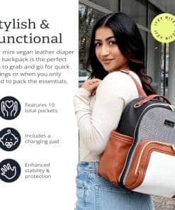 La mochila para pañales Itzy Ritzy Mini Plus combina estilo elegante y practicidad diaria, convirtiéndola en un gran bolso de pañales para padres ocupados. Hecho de cuero vegano, este bolso de pañales unisex ofrece un diseño compacto con 10 bolsillos bien ubicados, 6 internos y 4 externos, para una fácil organización. El bolso mini para pañales incluye bolsillos para biberones y un conveniente «bolsillo para padres» para llaves y esenciales. Para mayor conveniencia, viene con un cambiador lavable almacenado en un bolsillo trasero dedicado, haciéndolo perfecto para cambios de pañal sobre la marcha. Pies de goma resistentes con un diseño trenzado ayudan a proteger el bolso, garantizando que se mantenga erguido y limpio, incluso durante los viajes. Con correas de hombro ajustables y un asa superior, este versátil bolso de viaje para pañales brinda tanto comodidad manos libres como fácil acceso, convirtiéndolo en una elección práctica para padres que valoran el estilo y la función.