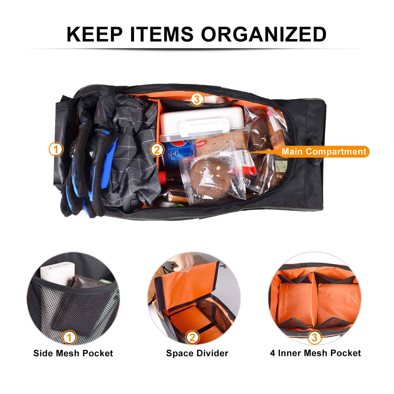 Bolso resistente al agua y al clima: Construido con tela Oxford 1680D de alta resistencia, nuestro bolso de asiento de scooter es resistente al agua, a las rasgaduras y al polvo. El marco resistente evita el hundimiento, mientras que las cremalleras dobles impermeables mantienen sus artículos seguros. El diseño de cremallera más ancho y grueso garantiza un uso suave, convirtiéndolo en una solución de almacenamiento duradera y confiable para tu Ruckus. Maximiza el almacenamiento: Nuestro bolso de almacenamiento para asiento de motoneta cuenta con una capacidad de 23 litros con un separador interior para la organización. Los bolsillos de malla de acceso rápido en el interior y un bolsillo delantero de malla ofrecen opciones de embalaje convenientes. El sistema Molle incorporado ayuda a organizar herramientas y pertenencias pequeñas de manera eficiente. ¡Actualiza tu Ruckus con soluciones de almacenamiento mejoradas!.
