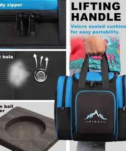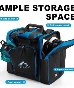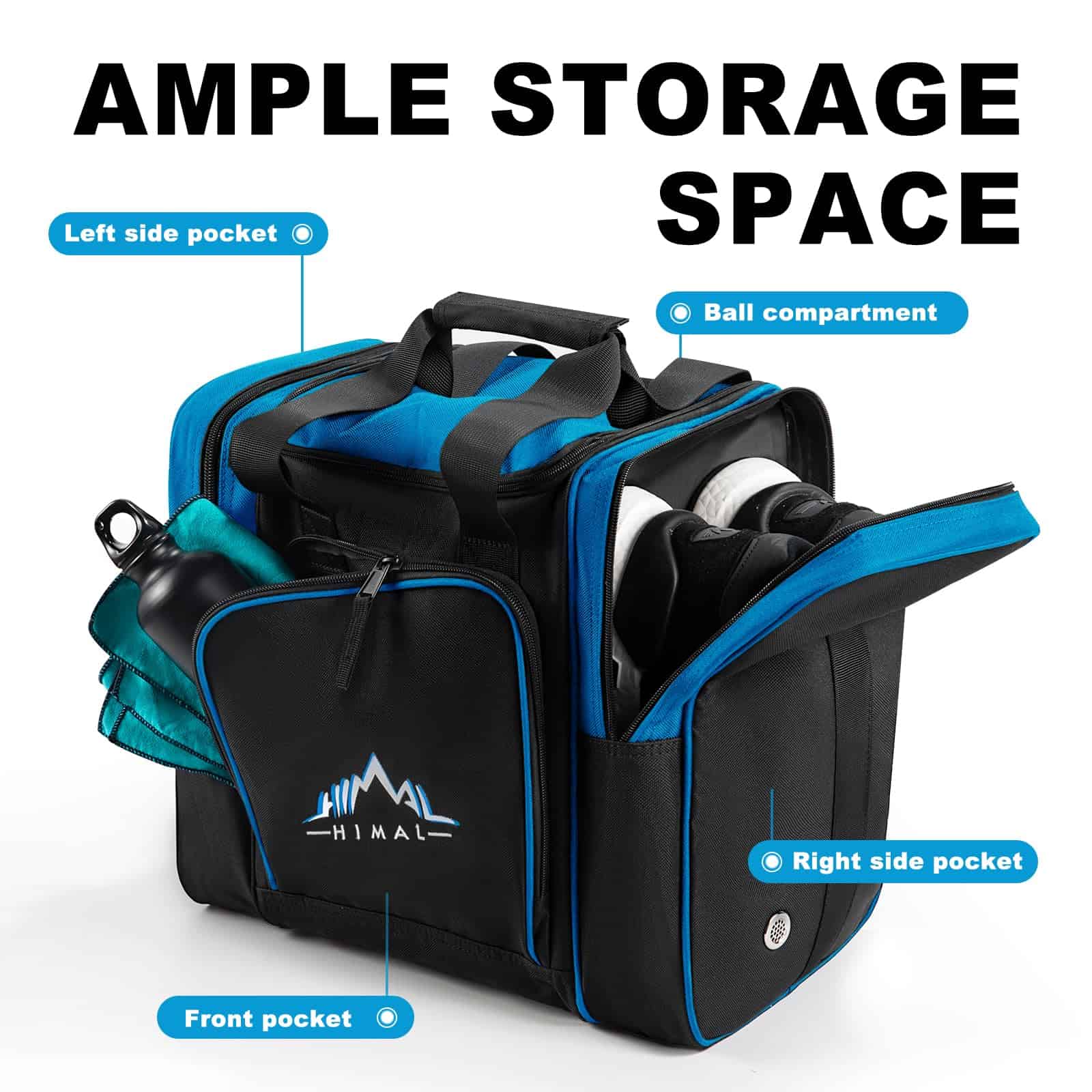 1. Suficiente EspacioEl bolso de bolos Himal tiene suficiente espacio para almacenar todos tus accesorios y equipos de bolos: puede contener 1 bola de bolos, dos bolsillos laterales (con ventilación) para un par de zapatos de bolos (hasta la talla 14 de hombres), toalla, etc. El compartimento delantero puede almacenar fácilmente carteras, llaves y teléfonos móviles.