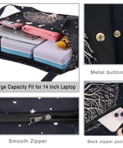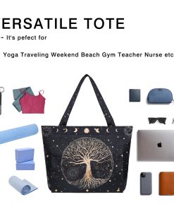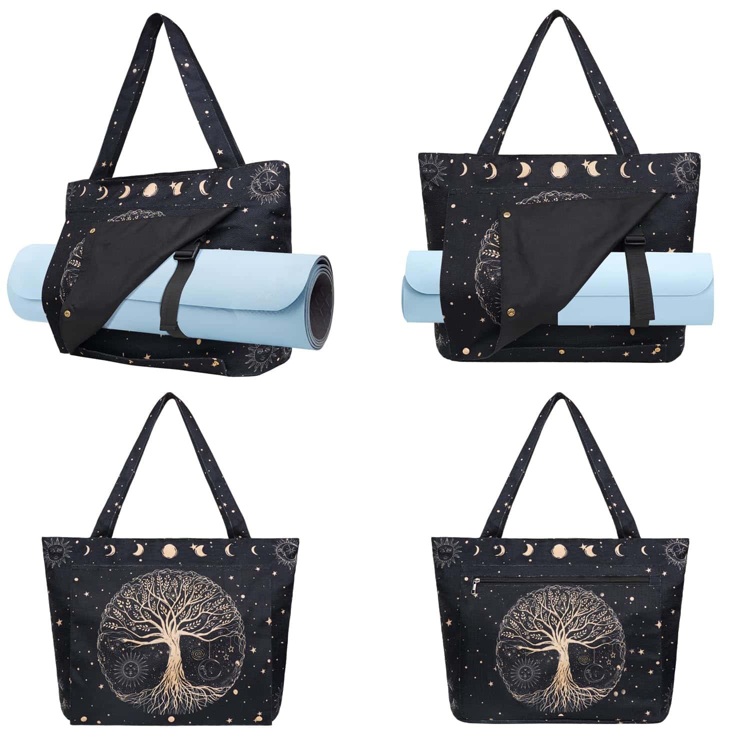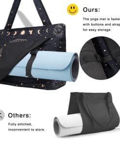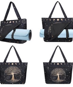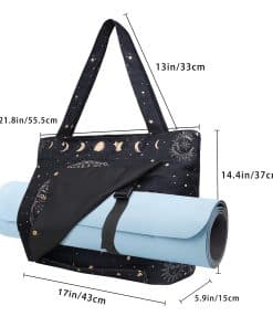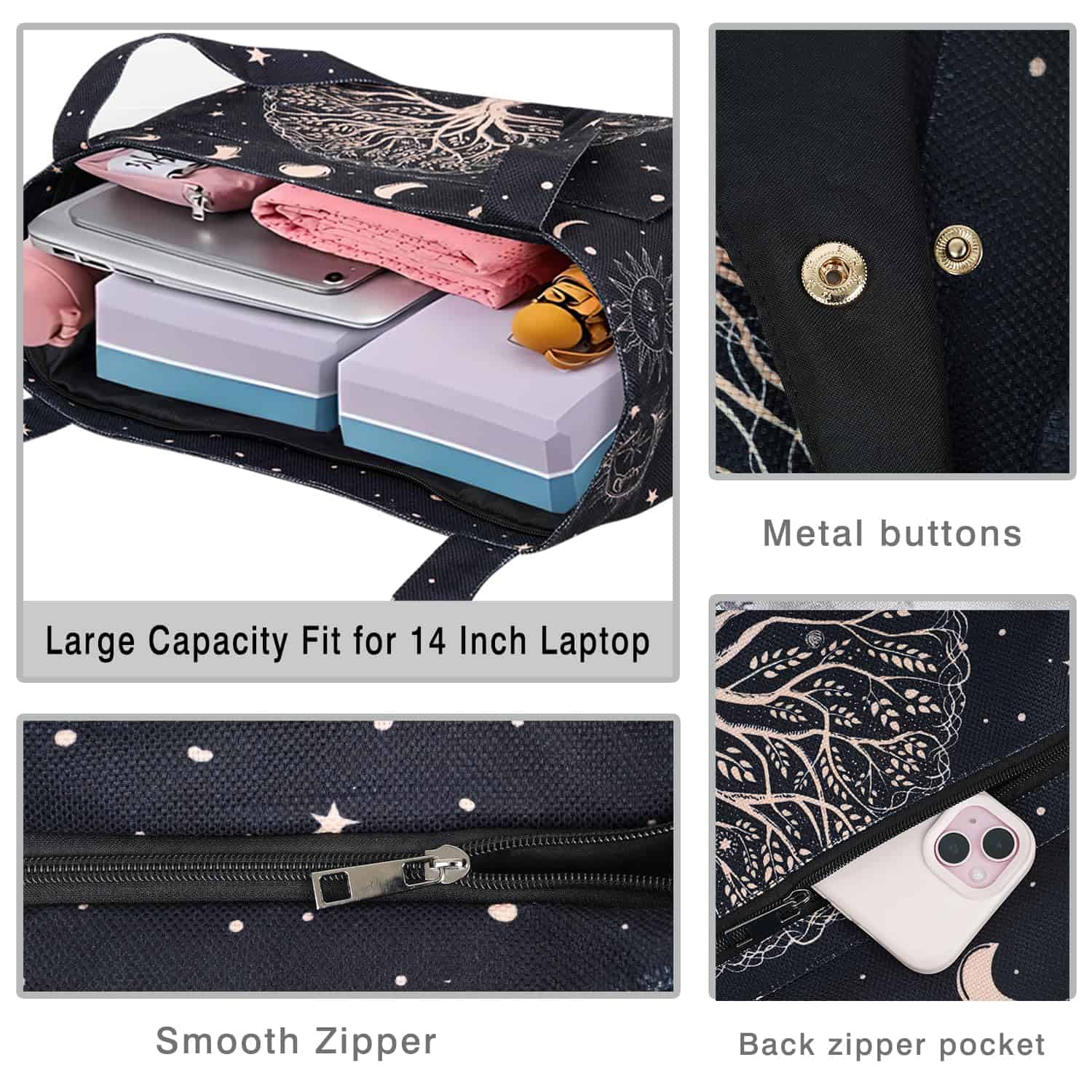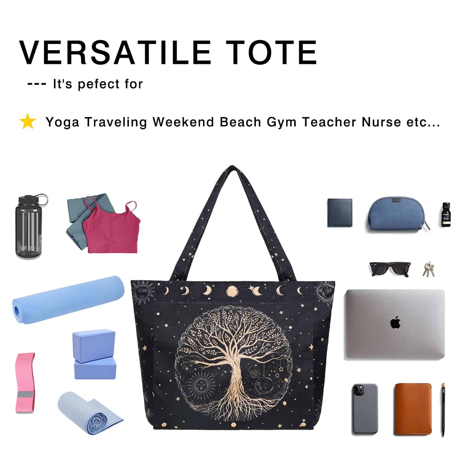 2. Tamaño de Gran Capacidad (17″x14.4″x5.9″), Se abre en la parte superior a 21.8″. Este tote tiene un bolsillo principal con cierre de cremallera completo y 1 bolsillo con cremallera incorporado, 1 bolsillo grande con cremallera en la parte trasera. Con mucho espacio en el interior para contener todos los accesorios que necesitas para tu rutina de yoga y fácil de llevar, incluyendo tu mat de yoga, ladrillo de yoga, toalla de yoga, ropa de yoga, cinturón para estirar, artículos personales, etc. No más molestias al empacar y transportar tu equipo de yoga de ida y vuelta al estudio. ¡Simplemente colócalo en tu hombro y ve!