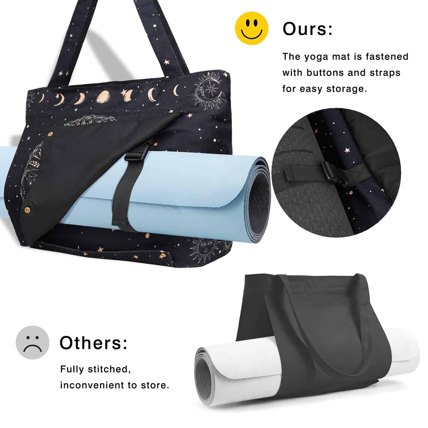 5. Multiuso: ¡Ya sea que estés buscando un bolso especializado para mat de yoga, portadores o simplemente un bolso de gimnasio simple, tenemos todo lo que necesitas! Los bolsos y portadores de yoga caben todo tu equipo. Nuestros bolsos para mat de yoga también pueden funcionar como bolsos deportivos, bolsos de compras, bolsos de playa e incluso bolsos para pañales. ¡Como bono, son excelentes regalos para todos los entusiastas del yoga! Un encantador bolso de pilates lleno de personalidad, ¡tan fresco y único.