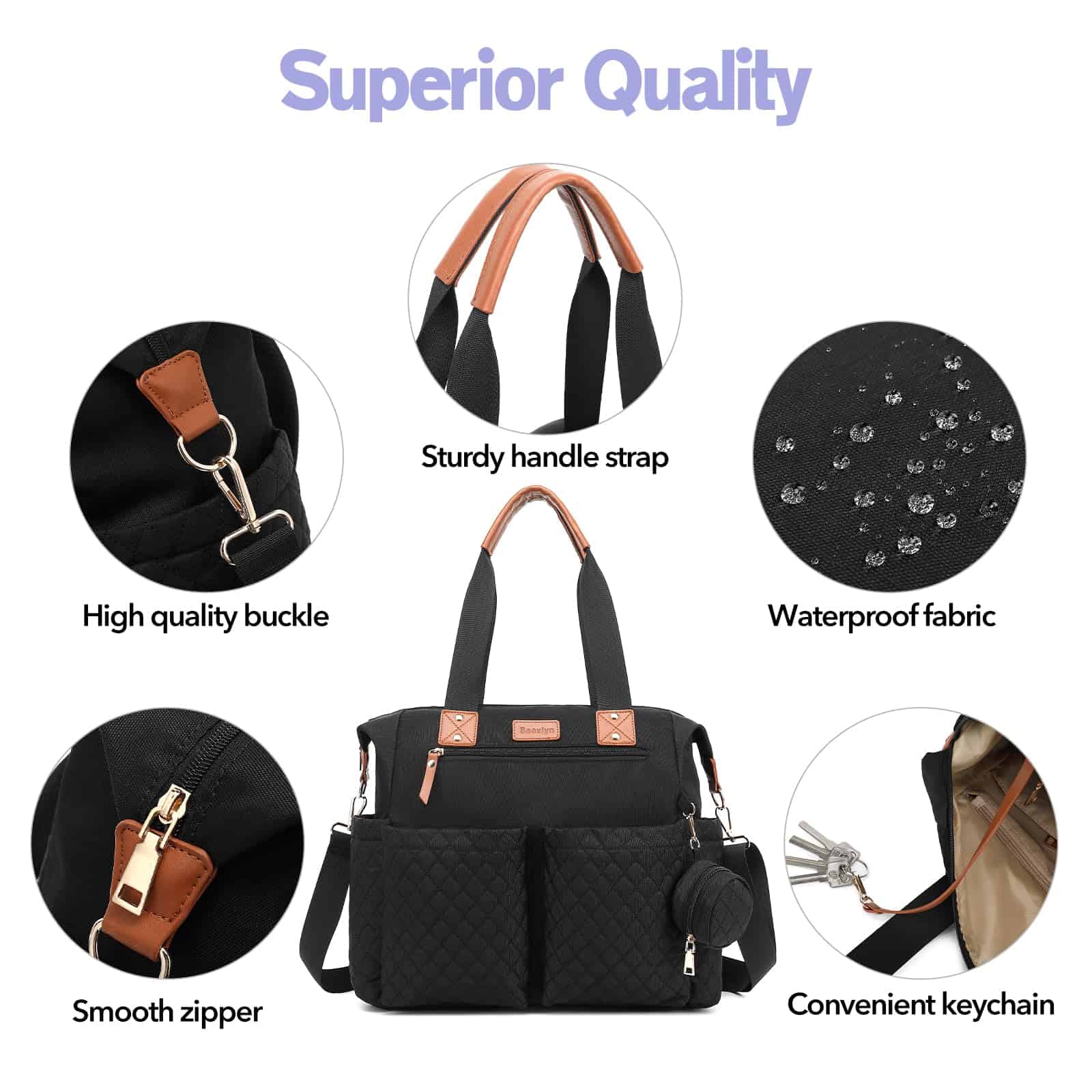 2. Resistente y Duradero Fabricada con tela impermeable de alta calidad y ligera con costuras reforzadas, esta bolsa para pañales tote está bien hecha para resistir el desgaste diario. El forro interior fácil de limpiar resiste derrames de leche o agua, mientras que el esquema de colores unisex garantiza practicidad tanto para mamás como para papás.