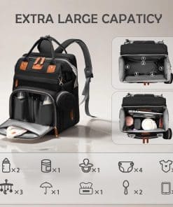 Confeccionado con tela resistente a las lágrimas y al agua, y cremalleras fuertes, esta mochila para pañales asegura un uso duradero. Las correas acolchadas reforzadas para los hombros y el panel trasero acolchado brindan comodidad durante todo el día. Equipado con una variedad de bolsillos, incluidos bolsillos aislados para biberones, bolsillos antirrobo y bolsillos impermeables, este bolso es ideal para mamás y papás ocupados.