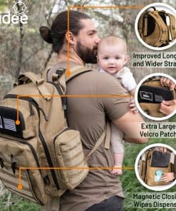 El Bolso para Pañales de Papá en Color Tan es el accesorio perfecto para padres activos y modernos que buscan un bolso versátil y resistente para llevar todo lo necesario para el cuidado de su bebé. Confeccionado con poliéster impermeable de 900D, este bolso es duradero y lo suficientemente resistente como para resistir el desgaste diario. Sus dimensiones de 18 x 16 x 8 pulgadas ofrecen un amplio espacio para guardar pañales, biberones, cambiador, toallitas y más, manteniendo todo organizado y accesible. Además, cuenta con características útiles como un dispensador de toallitas para bebé con cierre magnético, un bolsillo con cremallera para pañales sucios, bolsillos laterales aislados para mantener los biberones a la temperatura deseada, y correas acolchadas más largas y anchas para mayor comodidad al llevarlo. Este bolso para pañales es adecuado para usarlo en múltiples escenarios, desde recados diarios hasta salidas familiares, viajes, picnics y mucho más. Con el Bolso para Pañales de Papá en Color Tan, estarás preparado para cualquier situación que te depare la crianza de tu bebé.