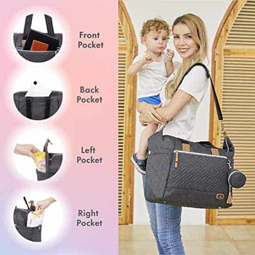 3. Unisex y versátil: El estilo sencillo pero espacioso sería ideal como bolso para pañales diario para mamás y papás con varios niños, perfecto para pasar un día largo fuera o una escapada de fin de semana con tu niño o niña también. También cumple una doble función como bolso de hospital para la llegada del bebé. Incluso será un excelente bolso de viaje más allá del bebé.