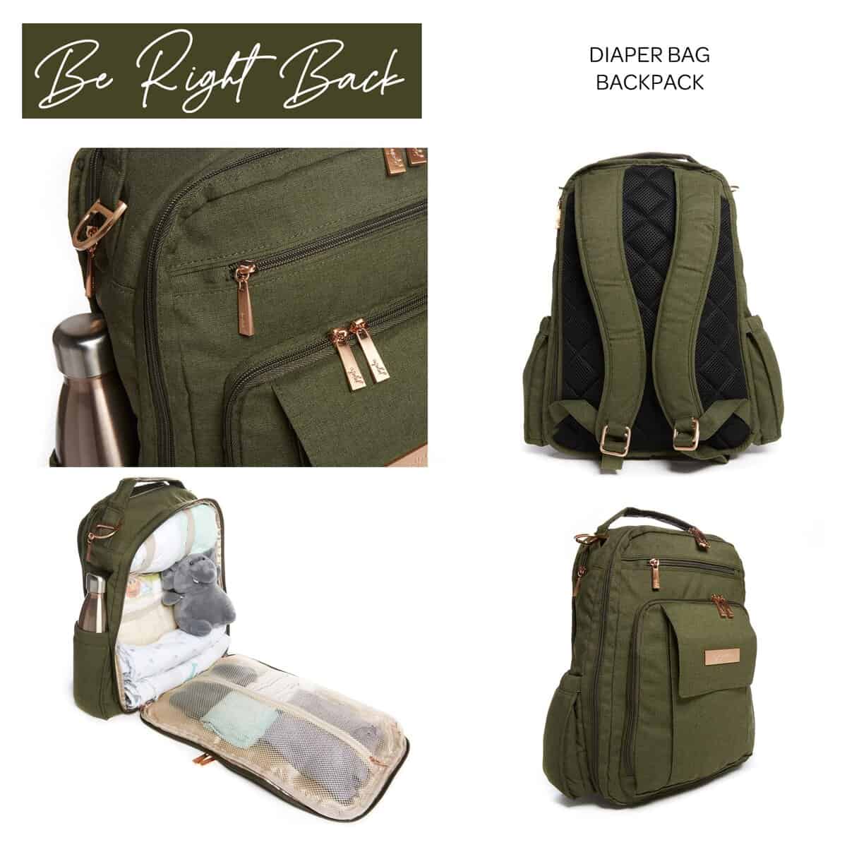 El bolso para pañales JuJuBe Be Right Back es perfecto para las mamás en movimiento. Con su diseño versátil y funcional, este bolso ofrece todo lo que necesitas para llevar contigo el kit de tu bebé. Incluye un cambiador portátil, ganchos para colgar en el cochecito, bolsillos especiales para biberones, pañales, chupete, toallitas, snacks y otros elementos esenciales diarios. Además, su color oliva le da un toque moderno y elegante que combina perfectamente con tu estilo.