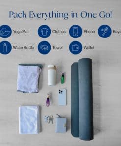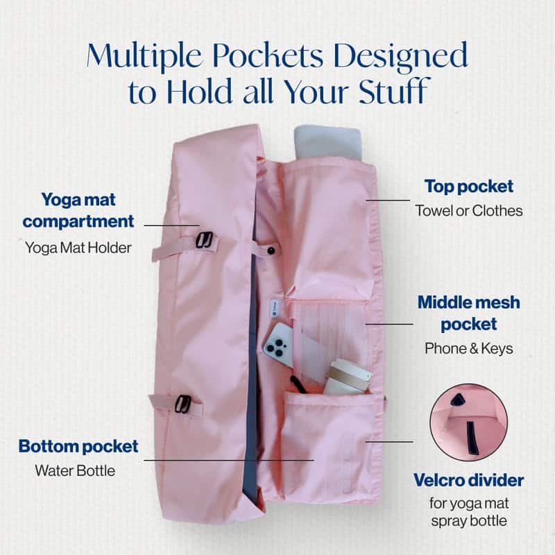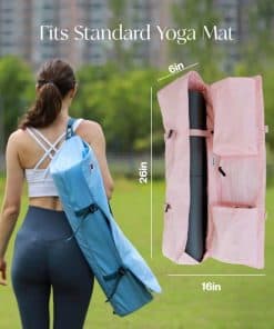 1. El ajuste perfecto: Diseñado para acomodar fácilmente tapetes enrollados de hasta 26» de ancho, este bolso para tapete garantiza que tengas suficiente espacio para tu tapete de yoga favorito, facilitando el transporte sin problemas. 2. Mantente organizado en movimiento: Equipado con tres bolsillos dedicados: 1 bolsillo con cierre para pertenencias personales, accesible desde adentro y afuera, 1 para un termo y spray para tapetes de yoga, y 1 para ropa ligera de yoga. 3. Correa de yoga incorporada: Con una correa de yoga incorporada, este bolso para tapete ofrece una práctica de yoga sin problemas en movimiento. Simplemente desabrocha la correa para el hombro y estira con facilidad, asegurando una comodidad suprema dondequiera que vayas. 4. Seguridad mejorada: Elige nuestro cierre tipo gancho G para una seguridad de tapete sin esfuerzo con tensión ajustable. Además, utiliza la correa interna para una estabilidad garantizada, asegurando que tu tapete de yoga se mantenga en su lugar y tu mente esté tranquila durante tus viajes. 5. Servicio al cliente incomparable: ¡100% de satisfacción garantizada o reembolso total! Tumaz ofrece un reemplazo o reembolso para TODOS los productos dentro del período de garantía de 60 días. ¡Sin necesidad de motivos, ¡fácil y simple!