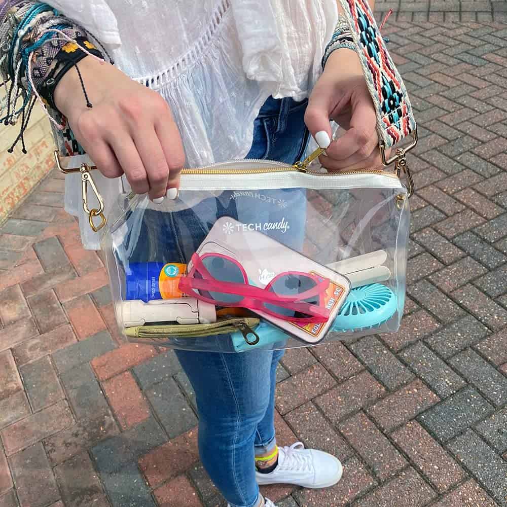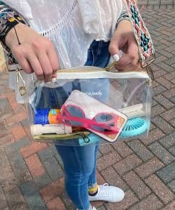 Porque una bolsa ziploc simplemente no es la forma en que te desenvuelves, nuestro bolso de estadio In the Clear está diseñado para cumplir con las regulaciones de instalaciones que requieren una bolsa transparente. Este bolso es la respuesta para llevar al hombro o cruzado en parques, juegos de fútbol, casinos, eventos y estadios universitarios. ¡No seas esa chica que regresa al auto bajo la lluvia porque olvidaste las regulaciones y trajiste tu bolso o mochila al gran evento!