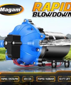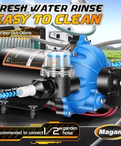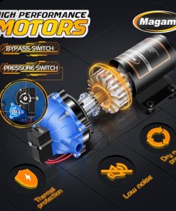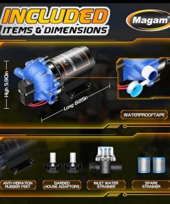 La Bomba de Agua de 12 Voltios Mejorada es la solución perfecta para sus necesidades de suministro de agua en sus viajes en barco, yate, caravana o camper. Con una capacidad impresionante de 7 Galones Por Minuto (GPM) y una presión máxima de 70 PSI, esta bomba de agua dulce para RV garantiza un flujo constante de agua para duchas, lavabos y otros dispositivos a bordo. Equipada con un inteligente interruptor de presión, la bomba se enciende y apaga automáticamente según sea necesario, lo que reduce el desgaste y ahorra energía.