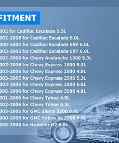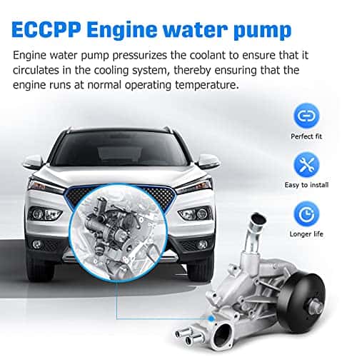 Acerca de nosotros br/ ECCPP, ofrece piezas y accesorios para la combinación perfecta de calidad y valor. Productos ECCPP con un diseño de oe, instalación sencilla y larga vida como garantía. Proporciona una amplia cobertura de piezas de auto para una amplia gama de aplicaciones de ruedas automotrices y todoterreno pesado br/ br/ br/ Compatibilidad br/ BUICK (3) 2004-2006 br/ Rainier (3) 2004-2006 br/ 2006 V8-325ci 5.3L F/I Vin M br/ 2005 V8-323ci 5.3L F/I Vin M br/ 2004 V8-323ci 5.3L F/I Vin P br/ CADILLAC (12) 2002-2006 br/ ESCALADE (9) 2002-2006 br/ 2006 V8-364ci 6.0L F/I Vin N br/ 2005 V8-325ci 5.3L F/I Vin T br/ 2005 V8-364ci 6.0L F/I Vin N br/ 2004 V8-325ci 5.3L F/I Vin T br/ 2004 V8-364ci 6.0L F/I Vin N br/ 2003 V8-325ci 5.3L F/I Vin T br/ 2003 V8-364ci 6.0L F/I Vin N br/ 2002 V8-364ci 6.0L F/I Vin N br/ 2002 V8-325ci 5.3L F/I Vin T br/ ESCALADE EXT (3) 2004-2006 br/ 2006 V8-364ci 6.0L F/I Vin N br/ 2005 V8-364ci 6.0L F/I Vin N br/ 2004 V8-364ci 6.0L F/I Vin N br/ CHEVROLET (152) 1999-2006 br/ AVALANCHE (8) 2002-2006 br/ 2006 V8-323ci 5.3L F/I Vin T br/ 2006 V8-325ci 5.3L FLEX/FI Vin Z br/ AVALANCHE 1500 (1) 2002-2002 br/ 2002 V8-323ci 5.3L FLEX/FI (MEX) br/ SILVERADO 1500 (26) 1999-2006 br/ 2006 V8-325ci 5.3L F/I Vin B br/ SUBURBAN 1500 (12) 2000-2006 br/ VAN G3500 1 TON EXPRESS (9) 2003-2006 br/ SIERRA C3 (1) 2001-2001 br/ 2001 V8-364ci 6.0L F/I Vin U br/ SIERRA DENALI (5) 2002-2006 br/ YUKON DENALI (2) 2005-2006 br/ br/ br/ Qué obtienes – 1 Bomba de Agua con junta br/