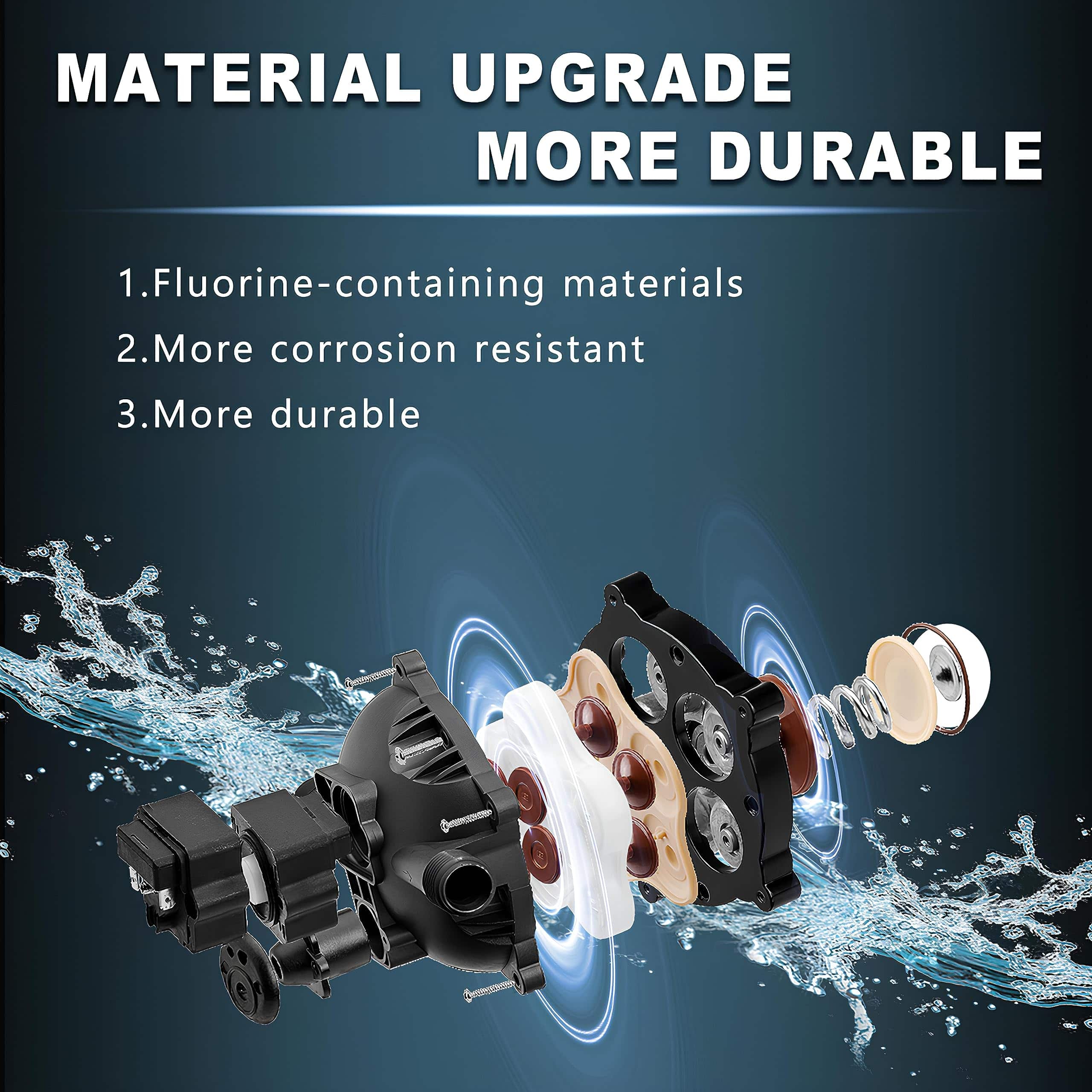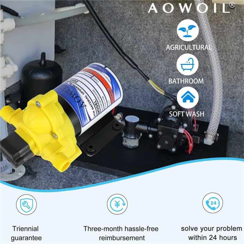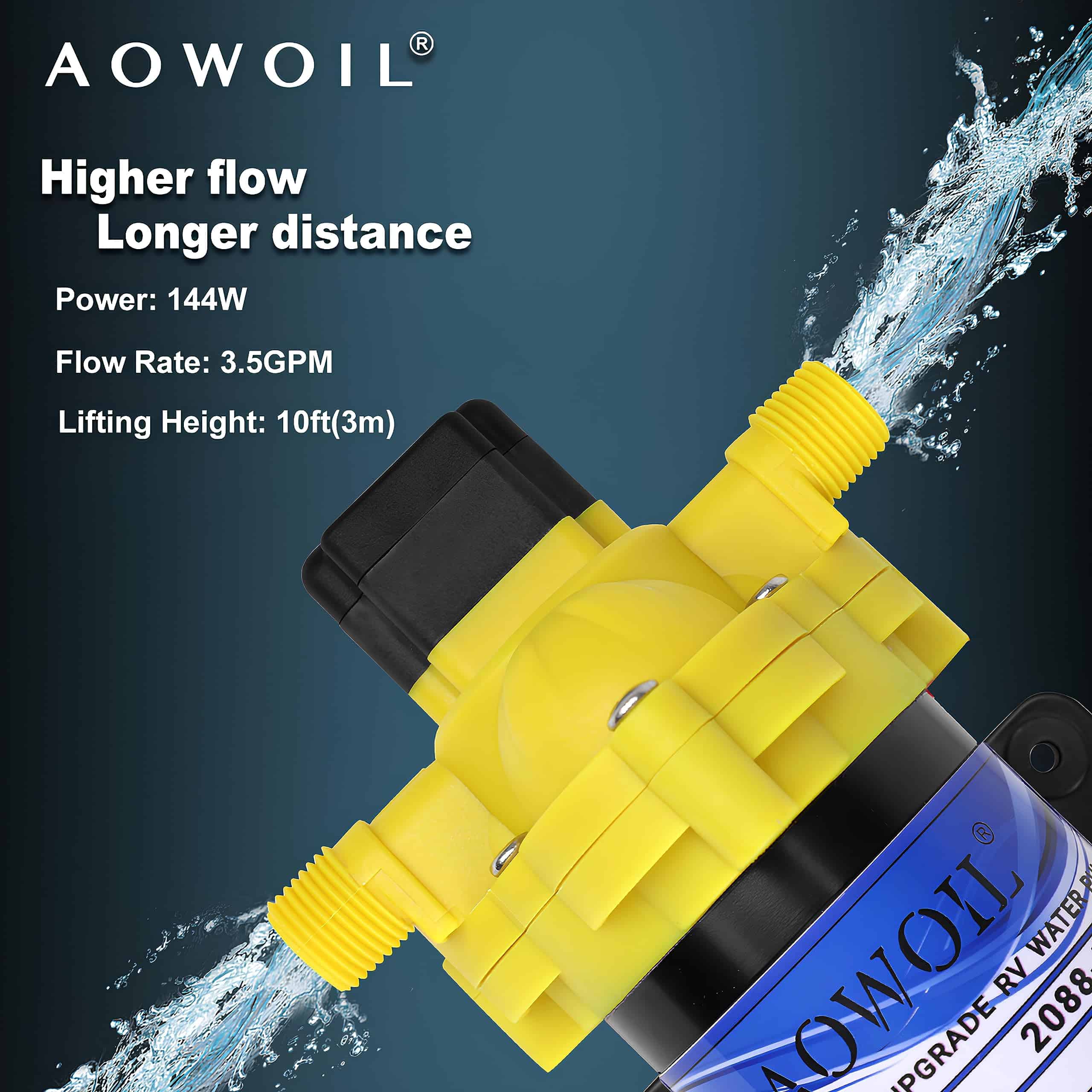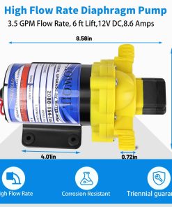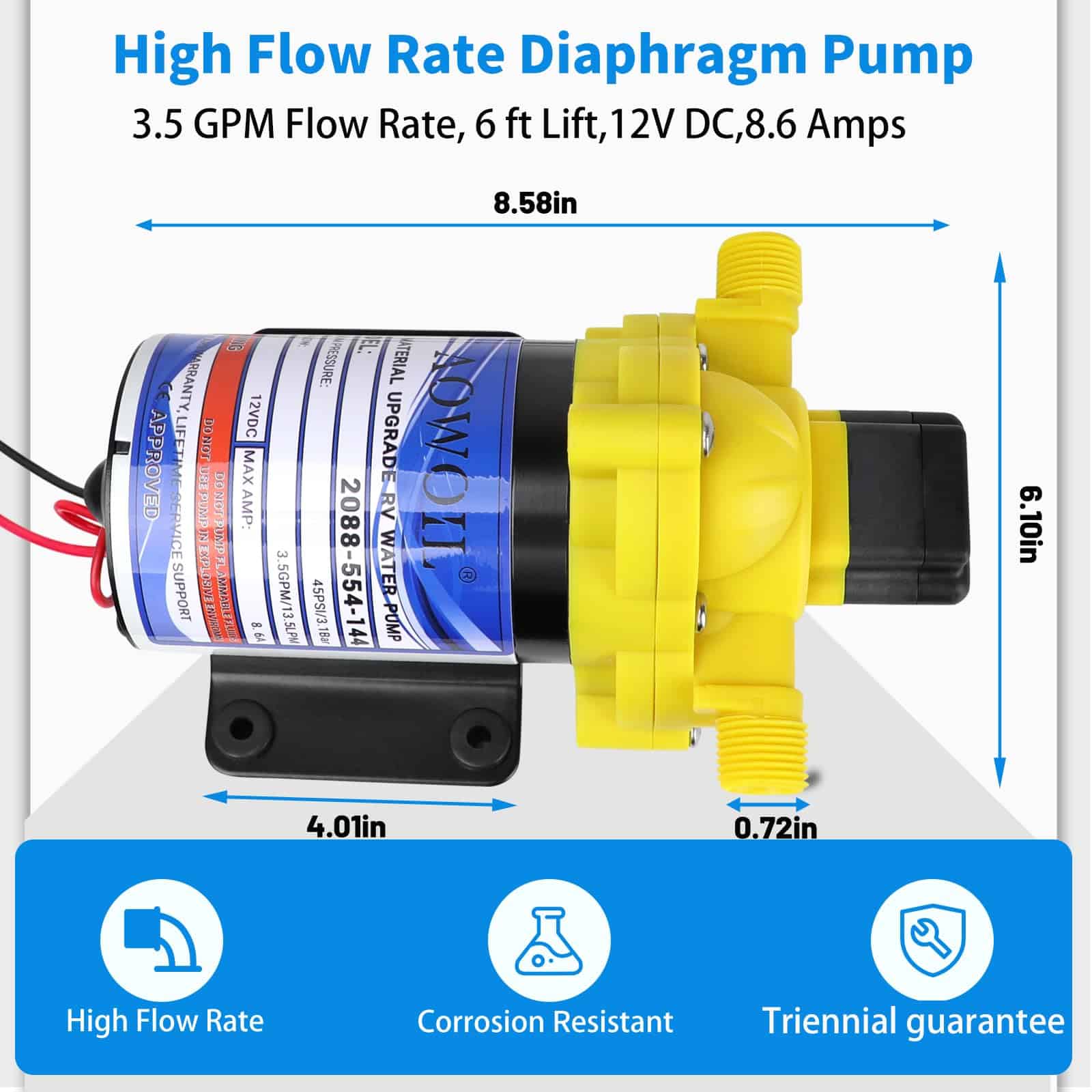 Bomba de agua dulce 2088-554-144, bomba de diafragma de 12VCC, tasas de flujo de hasta 3.5 GPM y 45 psi, autocebado hasta 10 pies, reemplaza la mayoría de las bombas de RV en el mercado. La serie 2088 de bombas de agua es de desplazamiento positivo con 3 cámaras de diafragma, válvula de retención para evitar el flujo inverso, protección térmica, está específicamente diseñada para bombear agua potable para tu RV o camper. La cabeza de la bomba cuenta con un dispositivo automático de encendido / apagado para aumentar el rendimiento de la bomba, la vida útil prolongada, operación suave, silenciosa y sin ruidos, se puede montar en cualquier posición y está diseñada para un mantenimiento fácil. Viene con un colector de bomba con Rosca MNPT, conectores y filtro, listo para usar directamente desde la caja, con un patrón de montaje estándar para adaptarse a la mayoría de los tanques de RV. Viene con una garantía de tres años, si por alguna razón no estás satisfecho, estaremos encantados de completar el servicio de devolución para ti, tu satisfacción es nuestra búsqueda última, esperamos ayudar a cada cliente.