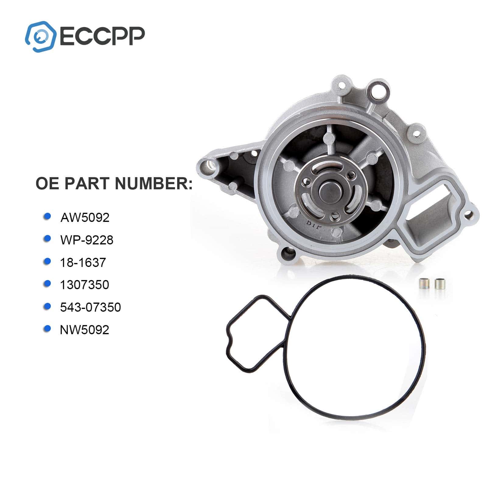El número de parte de OE para esta bomba de agua es AW5092 WP-9228 18-1637 1307350 543-07350, por lo que es importante verificar el número de parte en su bomba de agua automotriz original antes de la compra para garantizar un ajuste adecuado.