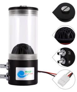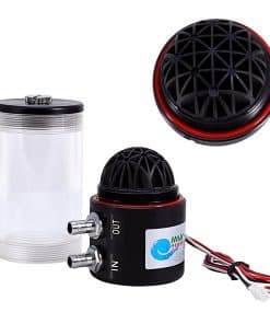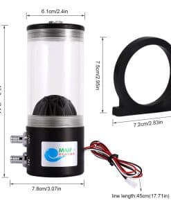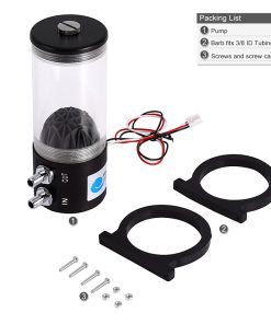 Especificaciones: Condición: 100% nuevo Caudal: Máximo 500 L/H Altura: Máximo 3 metros Capacidad del tanque de agua: 250mL Conector de alimentación: Conector de 3 pines Voltaje: DC12V Potencia: 10W Ruido: 16 DB Conexiones roscadas: G 1/4 DN8 (6.35mm) Vida útil: 50000 horas Tamaño: 60 x 150mm Paquete incluye: 1 x Bomba de agua para enfriamiento y tanque DC de 250ML F para CPU CO2 Intercambiador de calor de agua más fresca 500 L/H