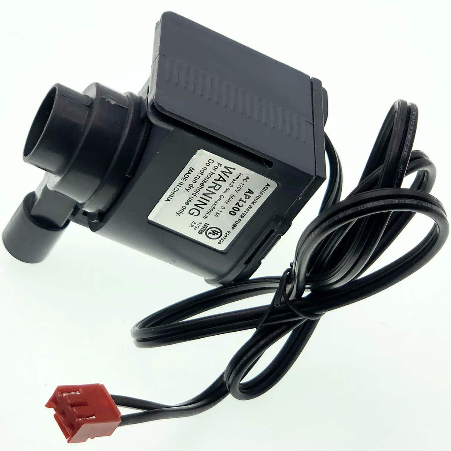 Modelo: AP1200, Bomba de agua AP1200 de 120V AC compatible con HZB-30F, HZB-38F, HZB-32, HZB-45, HZB-65, HZB-90, HZB-120, HZB-160 máquina de hielo comercial. mantenga el mejor rendimiento de las máquinas de hielo. Adecuado para bomba de agua de acuario. TAMAÑO: 47x46x60mm Diámetro de salida de agua: 15.5mm, Voltaje nominal: AC 120V 60Hz 0.13A Hmax:0.8m Qmax:600L/h.