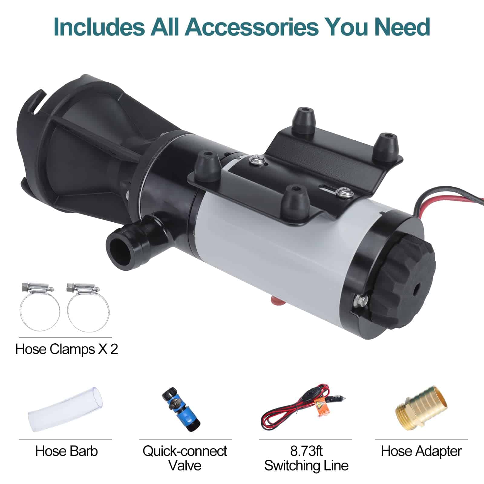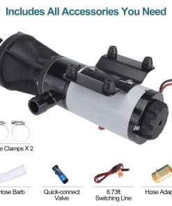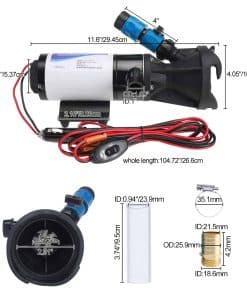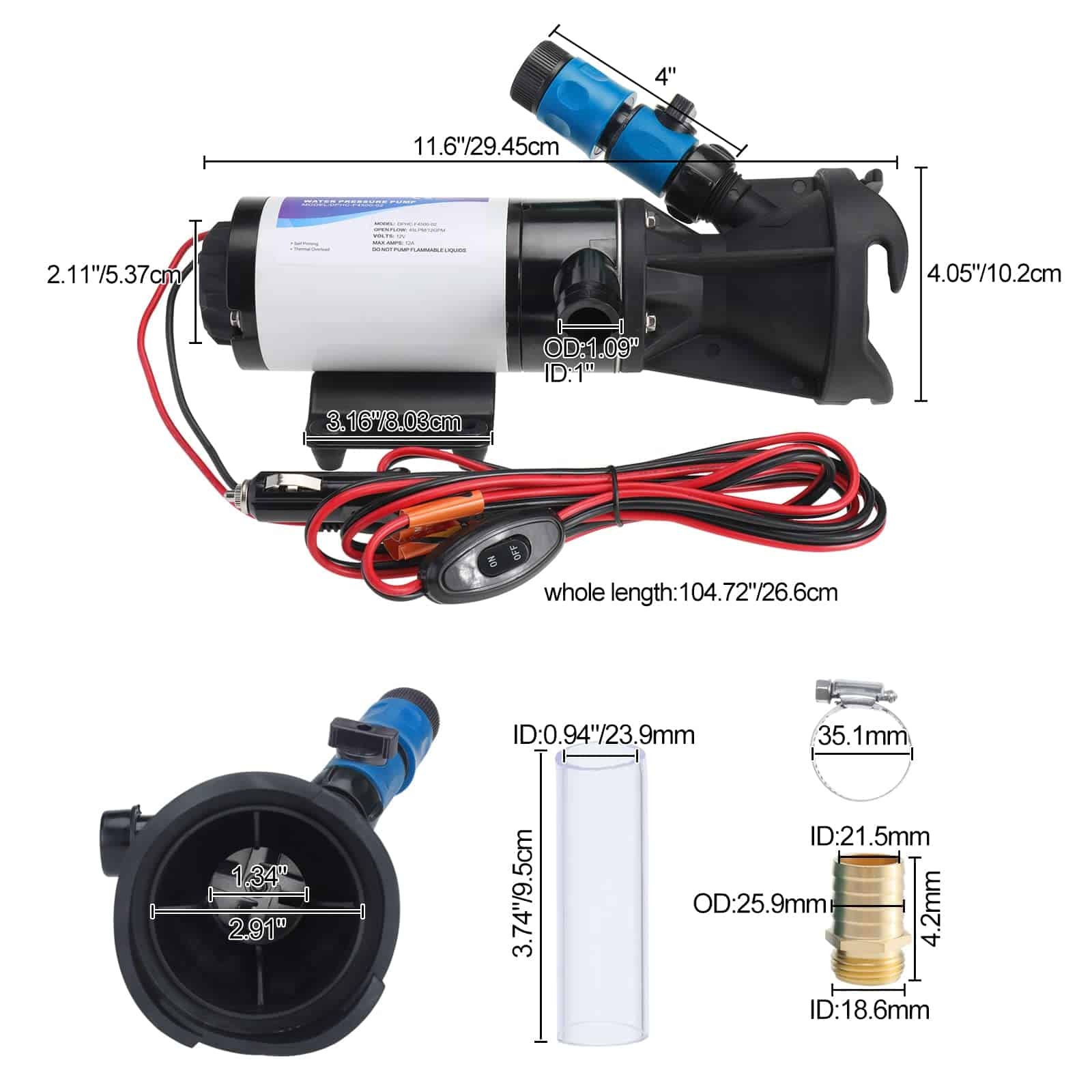 Especificaciones Tipo: Bomba de Aguas Residuales Sello: Tipo de labio Voltaje del motor: 12V DC Amp máx .: 12 A Flujo abierto: 12 GPM / 45 LPM Presión: 15 PSI / 1.1 Bar Puerto de Entrada: 3 pulgadas / 75 mm Puerto de Salida: 1 pulgada Con manguera Características: Autocebante con rodete flexible con placa de desgaste de acero inoxidable. Longitud del cable: 8.73 pies / 2.66 m (fácil de conectar al encendedor de cigarrillos) Kit de Bomba Maceradora para RV Motor de Cobre Puro: Cojinete de alta precisión, bajo consumo de energía, bajo ruido, alta velocidad, larga vida útil. Protección contra sobrecarga térmica incorporada: Cuando el motor se sobrecalienta, la bomba se detendrá y reiniciará automáticamente cuando la temperatura baje a un rango tolerable. Entrada de Agua de Trituración Estándar: Se puede conectar a una manguera de 3 pulgadas (75 mm) que puede triturar residuos dentro del área efectiva, con una fuerte potencia. Placa de Montaje de Hierro: Antivibración y reducción de ruido. La superficie está tratada con tratamiento galvanizado anticorrosión, que no es fácil de oxidar en un ambiente húmedo, es resistente a la corrosión, resistente a la oxidación y duradero. Doble Cuatro Hojas: Trituran la suciedad en pequeñas partículas, que pueden ser expulsadas rápidamente a través de la salida, reduciendo en gran medida la obstrucción. Longitud del Conector de Manguera de Jardín: 4 pulgadas El interruptor de encendido / apagado podría controlar el flujo de agua. Se puede conectar a una tubería de agua para enjuagar los residuos en la bomba. Consejos de Uso Función de Agitación Manual: Si la bomba dejó de funcionar debido a la hoja bloqueada, puede abrir la tapa inferior y girar el tornillo central con un destornillador recto para triturar manualmente el bloqueo. Se recomienda instalar un filtro en el extremo de entrada. y evitando las impurezas en el líquido, de lo contrario la bomba de agua se bloqueará fácilmente, lo que resultará en una disminución de la presión, la tasa de flujo y hasta la imposibilidad de bombear agua. Aplicaciones Inodoro de aguas residuales Yate de aguas residuales Tratamiento de aguas residuales RV Tratamiento de aguas residuales de cocina Nota Medición manual, error de 1-3 mm, dependiendo de la situación real, por favor entienda. No dude en contactarnos si tiene alguna pregunta sobre el producto. Haríamos nuestro mejor esfuerzo para resolver cualquier problema para usted.