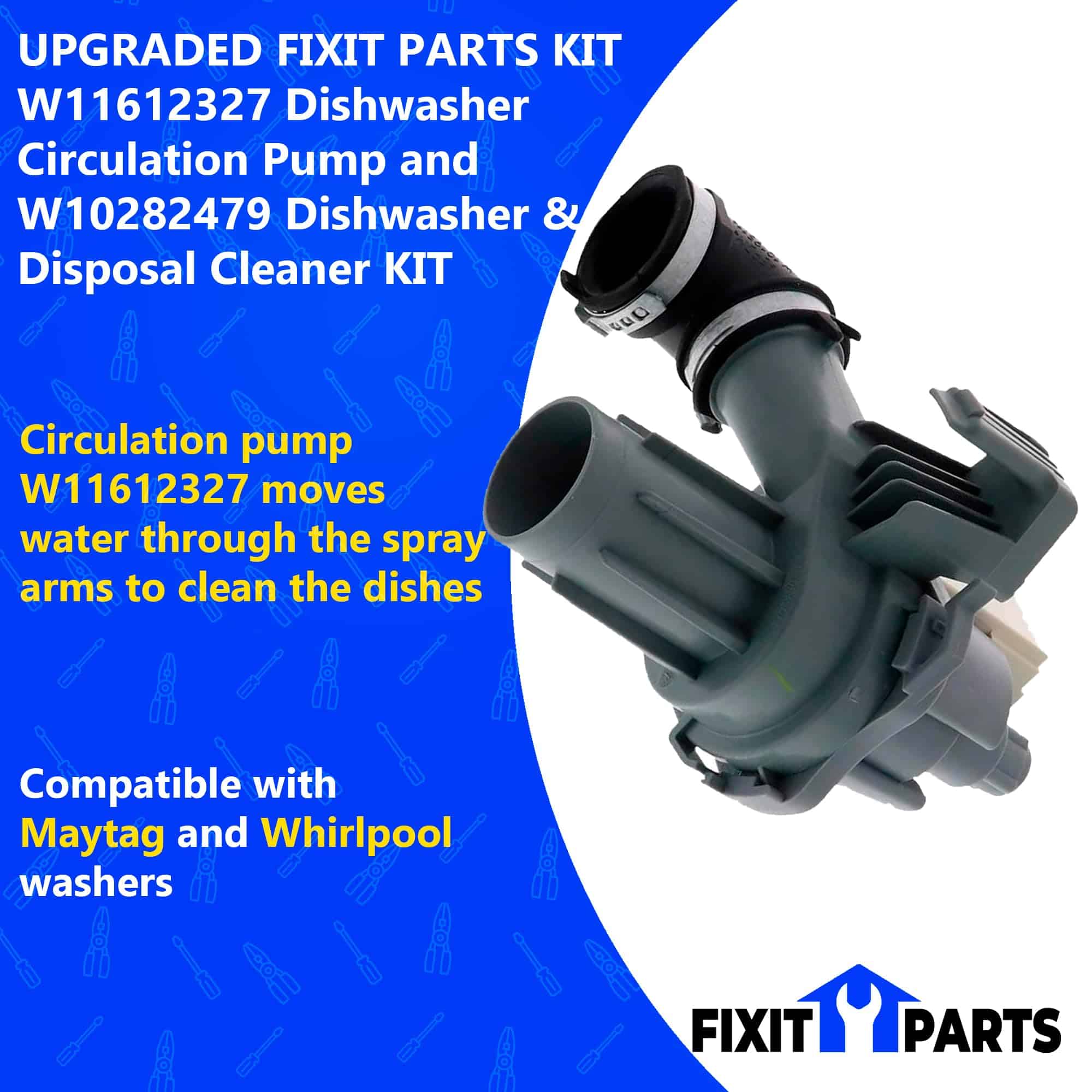 Bomba de circulación para lavavajillas W11612327 Original, reemplaza a W11024423, W10805387 y W10282479. Esta bomba de desagüe para lavadora está diseñada para un ajuste perfecto en una variedad de modelos de lavadoras GE. Kit de limpieza para lavavajillas y triturador.