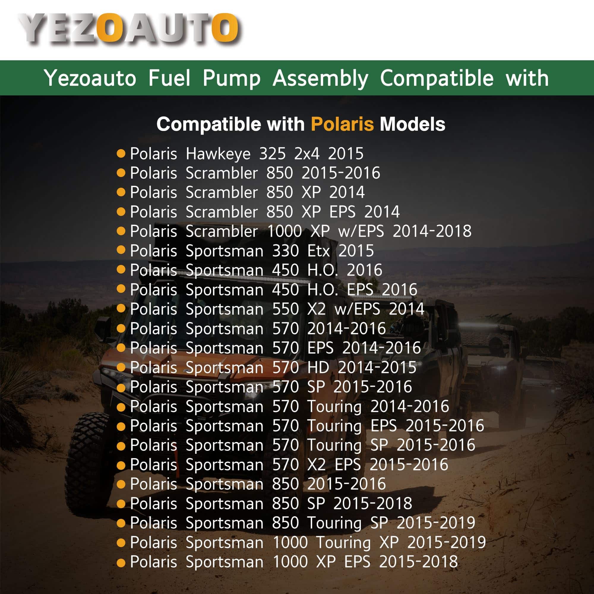 La bomba de combustible Yezoauto es compatible con una amplia gama de modelos Polaris Sportsman y Scrambler. Asegúrese de verificar la compatibilidad de su vehículo antes de realizar la compra. Esta bomba de combustible tiene una función vital en el sistema de entrega de combustible de su vehículo al suministrar combustible limpio y presurizado a los inyectores de combustible. Además de esto, proporciona lecturas precisas del nivel de combustible y realiza funciones críticas como cerrar la boquilla de combustible durante el repostaje. La instalación de la bomba de combustible es sencilla, pero se recomienda seguir los pasos mencionados en las instrucciones para una instalación correcta y segura. La bomba de combustible Yezoauto está respaldada por una garantía de 1 año, lo que garantiza la calidad y fiabilidad del producto. Si experimenta algún problema con la bomba de combustible, no dude en ponerse en contacto con nosotros y le proporcionaremos asistencia o una solución oportuna. ¡Confíe en la bomba de combustible Yezoauto para mantener su vehículo funcionando de manera óptima!