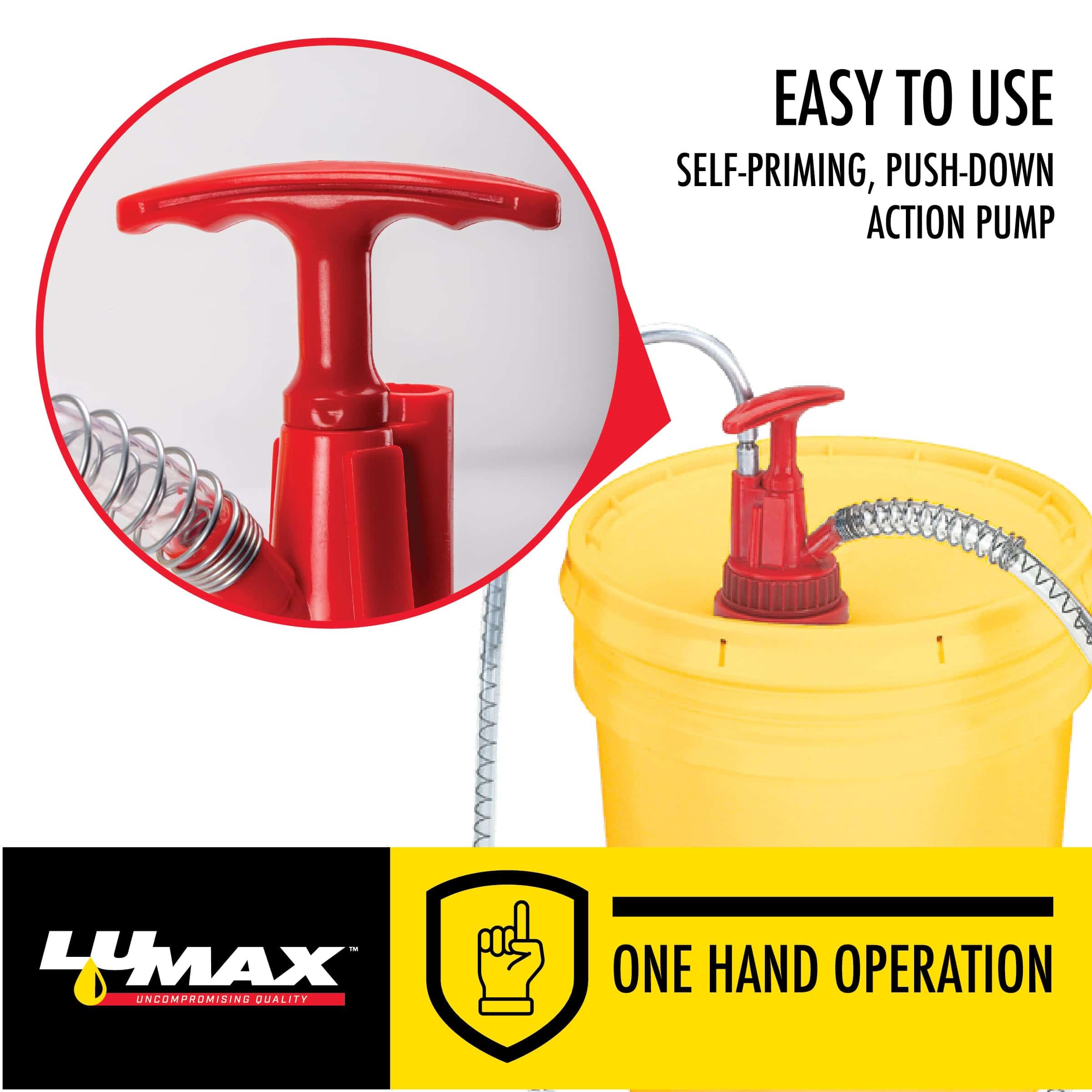 Bomba de Cubo de Plástico Rojo LX-1336 LUMAX con Manguera Flexible y Boquilla Antigoteo. Bomba de Acción de Empuje Autopriming. Capacidad de Descarga: 3 Onzas por Golpe. Bomba de Cubo de Plástico con Tubo de Acero Galvanizado para transferir fluidos no corrosivos de viscosidad ligera a media como Aceite de Motor, Aceites para Engranajes, Fluido de Transmisión, Aceite de Máquina y Anticongelante. Altura de la Bomba: 20″ (50 cm). Puerto de Entrada de 1″ (25 mm) y Puerto de Salida de 1/4″ (6 mm). Lumax es un fabricante de productos de lubricación y gestión de fluidos. Nuestros productos, que incluyen pistolas de grasa, bombas manuales y eléctricas, embudos, drenajes, accesorios, están construidos con los más altos estándares e incorporan muchas características propietarias. La misión de Lumax es brindar a profesionales y consumidores productos innovadores y de alta calidad para hacer el trabajo correctamente. El desarrollo del producto en Lumax va más allá del producto físico, para comprender más profundamente las necesidades de los usuarios finales. Diseñados pensando en el usuario, los productos de Lumax se construyen con los más altos estándares e incorporan muchas características únicas que hacen que el trabajo sea más fácil, rápido y rentable. Tenemos pasión por el proceso de diseño. Escuchamos a nuestros clientes y sus requisitos en constante expansión. Nuestros productos únicos lideran el campo en diseño, calidad y rendimiento.