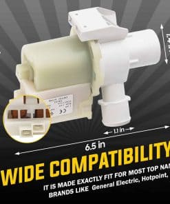 WH23x10030 Drain Pump es una bomba de desagüe de reemplazo aprobada por el fabricante para su lavadora. Para completar esta reparación, necesitará un driver de tuerca de 1/4 de pulgada, un driver de tuerca de 5/16, un destornillador de hoja plana y un par de alicates. Funciona con marcas como General Electric, Hotpoint. Reemplaza los números de parte: WH23X0081, WH23X0091, WH23X0092, WH23X10003, WH23X10013, WH23X8081, WH23X81, WH23X91 y WH23X92. Funciona con los siguientes modelos: General Electric: 51451Y1WW, General Electric: 51451Y2WW, General Electric: 52120TAWB, General Electric: 56021A0WW, General Electric: 56031A0WW, General Electric: 56041A0WW, General Electric: 56051A0WW. Una nueva bomba de desagüe para lavadora puede solucionar: – La lavadora no drena – La lavadora bombea pero no gira – Ciclos ruidosos – Fugas de la lavadora. Instrucciones para el reemplazo: Las herramientas necesarias para este proyecto de reparación son un cuchillo para masilla, destornillador Phillips y de hoja plana, driver de tuerca de 1/4 de pulgada y alicates de punta fina. 1. Desconecte todas las redes eléctricas e hidráulicas para la lavadora. 2. Vacíe todo el contenido y también cualquier agua en el interior. 3. Desmonte la bomba de desagüe defectuosa del álaben/filtro/eje de la máquina incluyendo la conexión eléctrica e hidráulica. 4. Instale cuidadosamente en el mismo lugar el nuevo motor de la bomba de desagüe con el nuevo empaque, el soporte eventual y la protección para el agua. 5. Apriete los tornillos para evitar que se atasquen excesivamente para que no dañen los hilos. 6. Repare la conexión eléctrica e hidráulica para la bomba de desagüe, verificando y supervisando el correcto funcionamiento de la máquina. WH23x10030 Drain Pump Parte de repuesto para una incomparable combinación de durabilidad, funcionalidad conveniente y gran valor por su dinero.