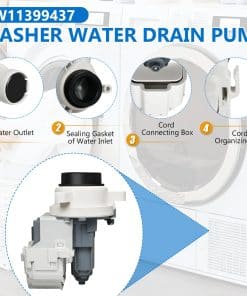 Número de parte: La bomba de desagüe para lavadora W11399437 reemplaza los números de parte W11259498 PD00058225 4961028 AP6974144 PS12731241 EAP12731241.