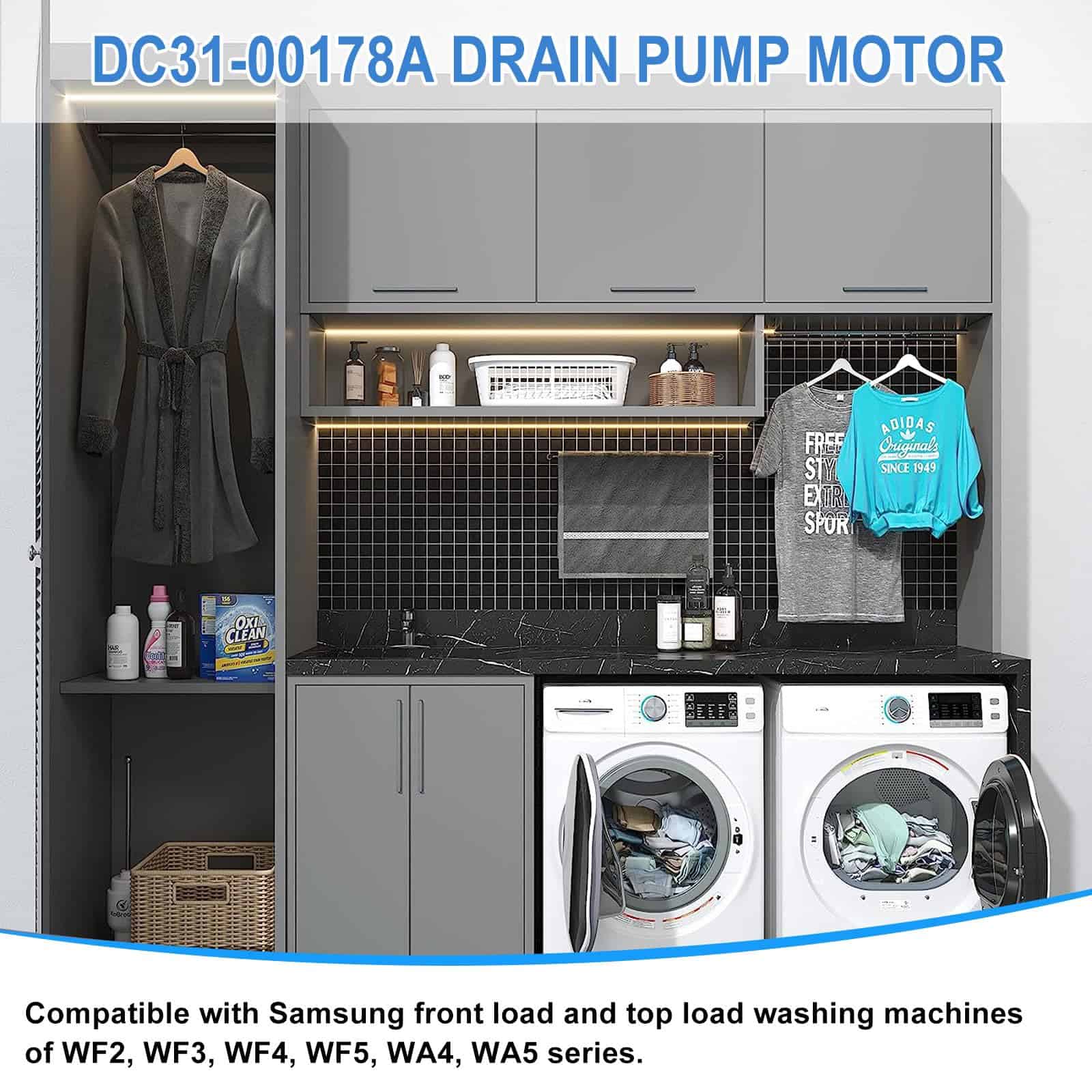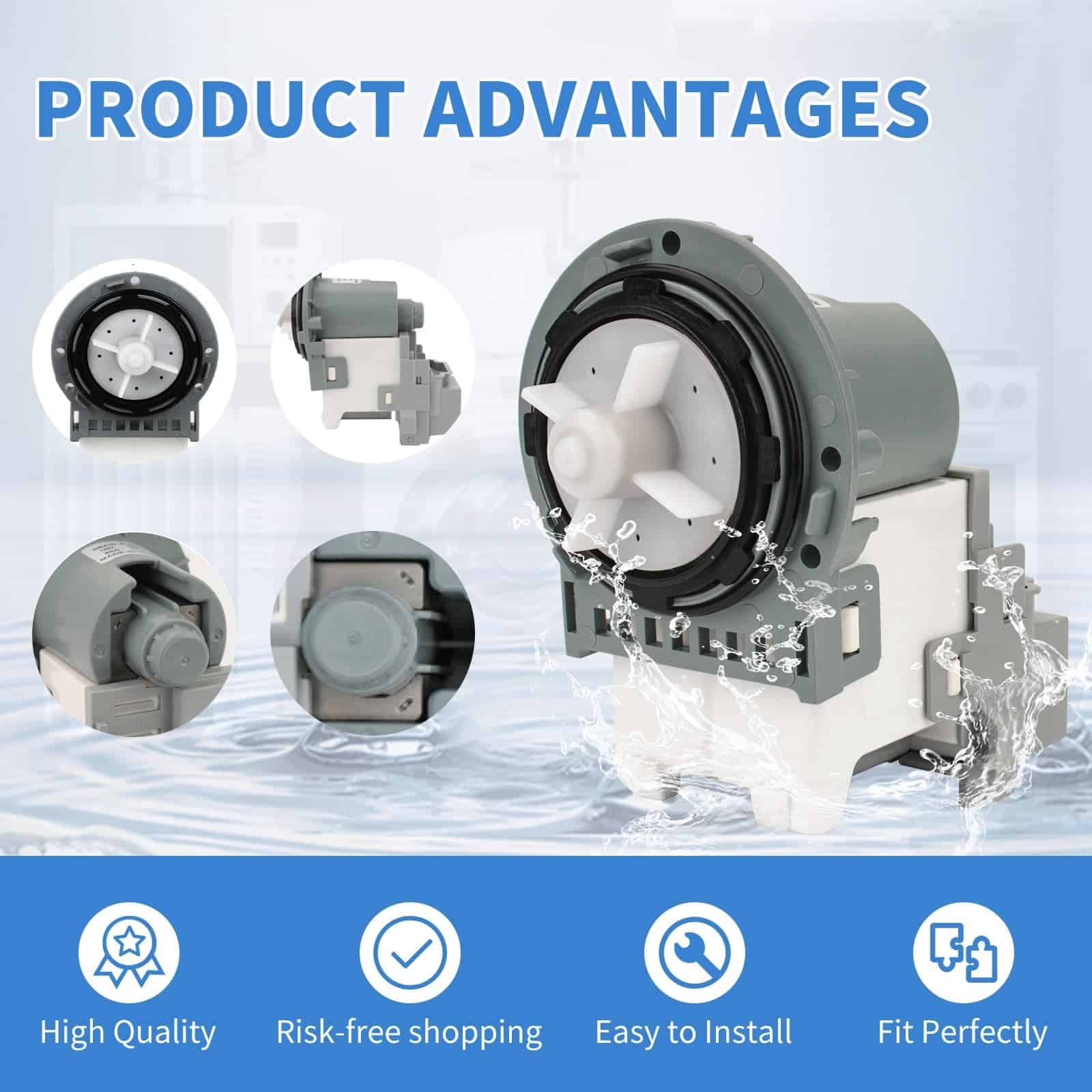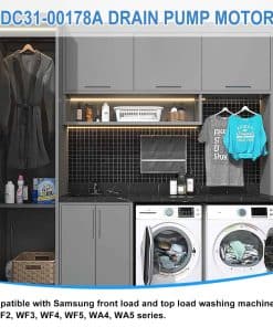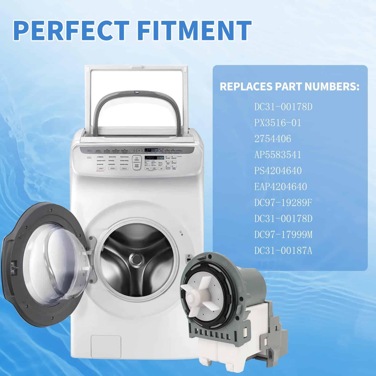 Reemplaza los números de parte DC31-00054D PX3516-01 DC31-00178A DC31-00178D DC97-19289F DC31-00187A 2754406 AP5583541 PS4204640 AP5916591 PS9605762 EAP4204640.(120V,60Hz,80W) Compatible con modelos DC31-00187A Lavadora Bomba de desagüe compatible con algunas lavadoras de carga frontal y carga superior de Samsung de las series WF2, WF3, WF4, WF5, WA4, WA5 y más. Material de alta calidad El motor de bomba de desagüe DC31-00178A está hecho de metal duradero de alta calidad y plástico ABS que evita la rotura durante el proceso de uso. Hace que la máquina funcione de manera suave y silenciosa. Cumple con los estándares OEM. Asegura un rendimiento efectivo y duradero. Fácil de arreglar los siguientes problemas: fugas de la lavadora, la bomba de la lavadora no gira, la lavadora hace ruido, la lavadora no se vaciará, la ropa saldrá más seca que nunca. Nuestro motor de bomba de desagüe DC31-00178D es fácil de instalar, puede encontrar videos en YouTube para guiarlo a través del proceso. Desconecte la lavadora antes de instalar esta parte. Use guantes de trabajo para proteger sus manos. Garantía de un año. Por cualquier motivo, si no está satisfecho, puede solicitar un reemplazo o un reembolso completo. Cualquier pregunta, no dude en contactarnos. Gracias.
