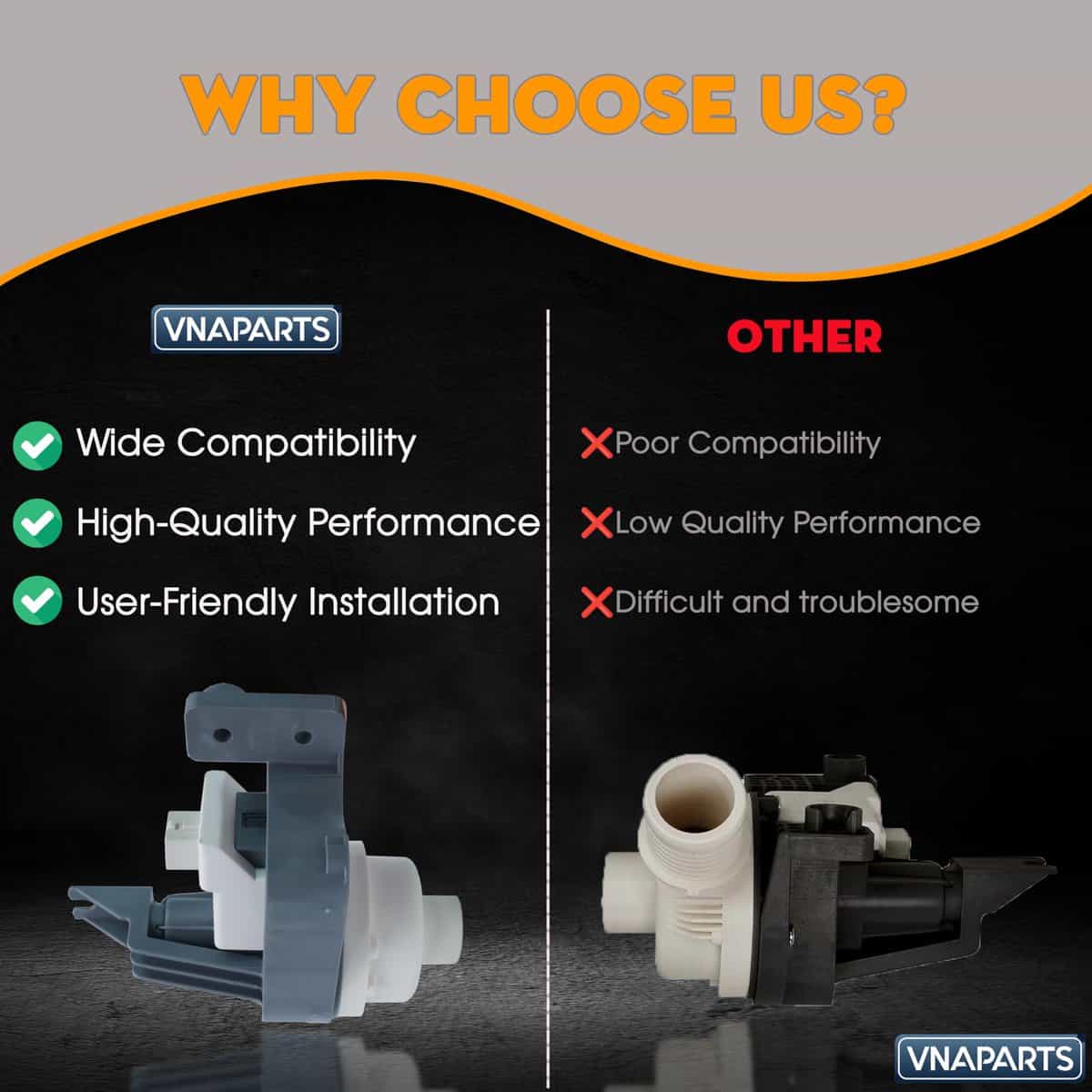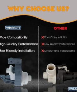 Compatibilidad: La bomba de desagüe w10876600 está diseñada para reemplazar los números de parte W10876600VP, AP6004933, B25-3A04, 4455877, PS11738156, W10727777, PD00034529. Su ingeniería precisa garantiza un ajuste perfecto en tu lavadora, eliminando las preocupaciones de compatibilidad y proporcionándote una solución confiable para tu electrodoméstico.