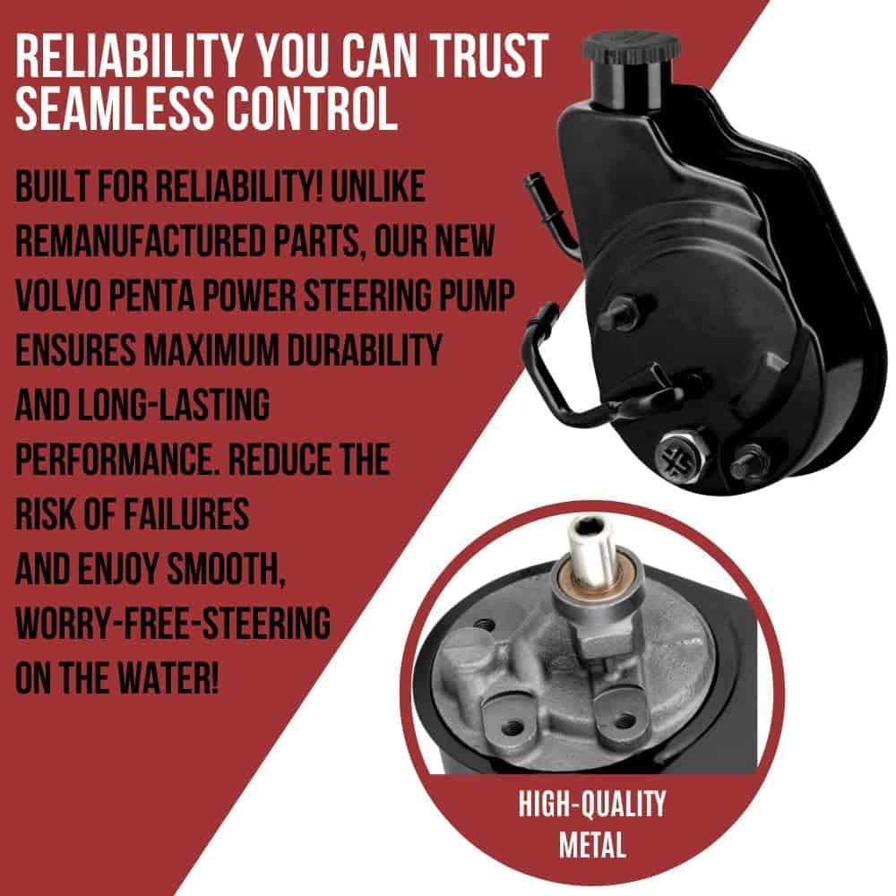 Bomba de dirección asistida completa RPS para Volvo Penta. Esta bomba es una opción de reemplazo de alta calidad para los motores Volvo Penta. Con este producto, obtendrá una bomba de dirección asistida completa que se ajusta perfectamente a su motor. Esta bomba es nueva, no reconstruida, por lo que puede estar seguro de su calidad y rendimiento. Reemplaza los números de parte 3860871, 3884974. La bomba viene completa con la carcasa del depósito y la tapa, lo que facilita su instalación y uso. Asegúrese de verificar la compatibilidad con su modelo exacto antes de realizar la compra. Actualice la bomba de dirección asistida de su Volvo Penta con esta opción de alta calidad que le brindará un rendimiento confiable.