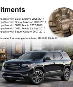Nota: Si experimenta síntomas como ruido de quejido al girar el volante, volante lento para responder, volante rígido o ruidos chirriantes y crujidos al arrancar el vehículo, podría necesitar reemplazar su antigua Bomba de Dirección Asistida con esta. Compatible con Buick Enclave 2008 – 2017 Compatible con Chevy Traverse 2009 – 2017 Compatible con GMC Acadia 2007 – 2016 Compatible con GMC Acadia Limited 2017 Compatible con Saturn Outlook 2007 – 2010 Número de Pieza OEM 20954812 20-2403 96-2403