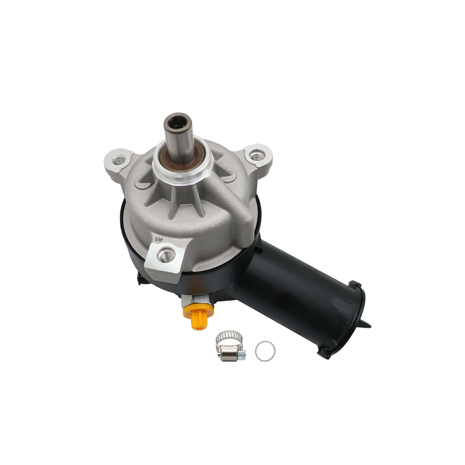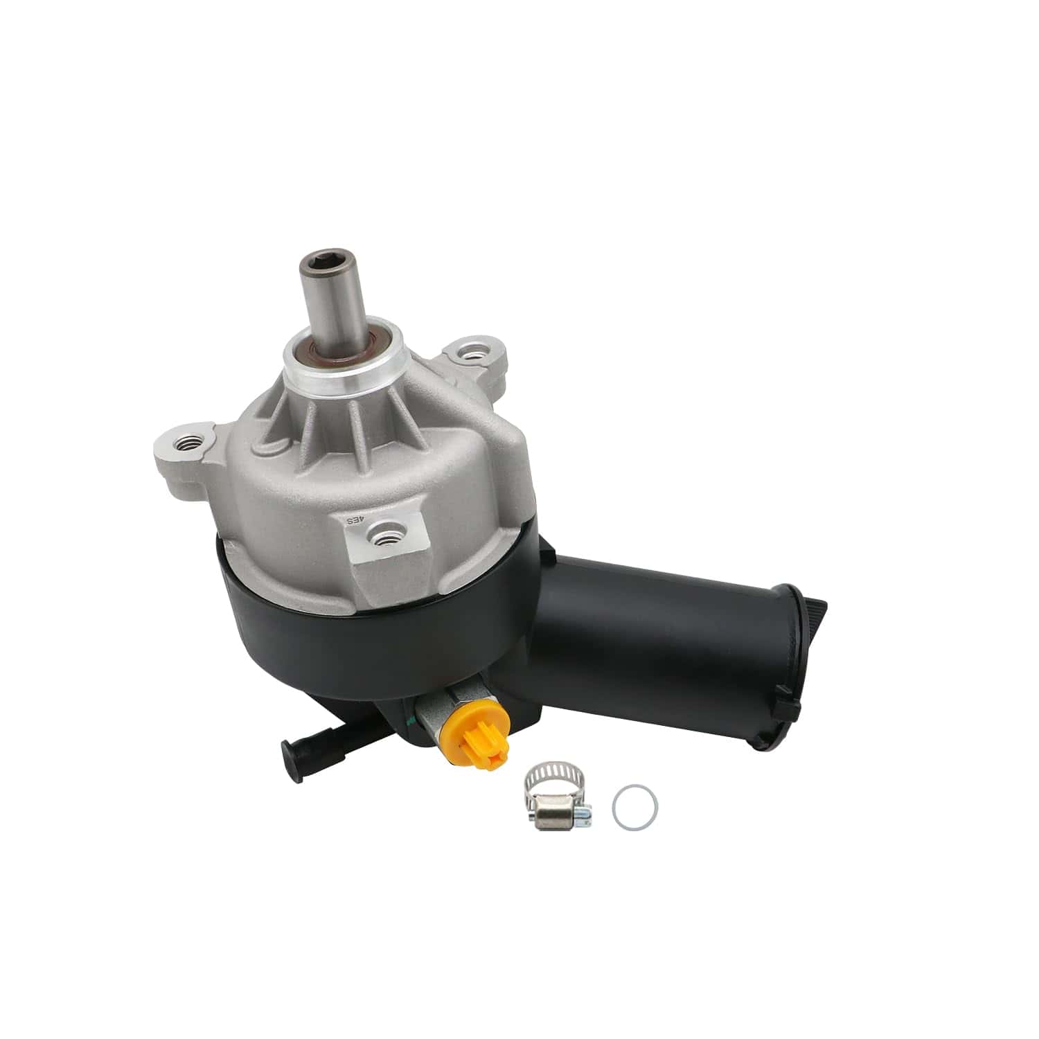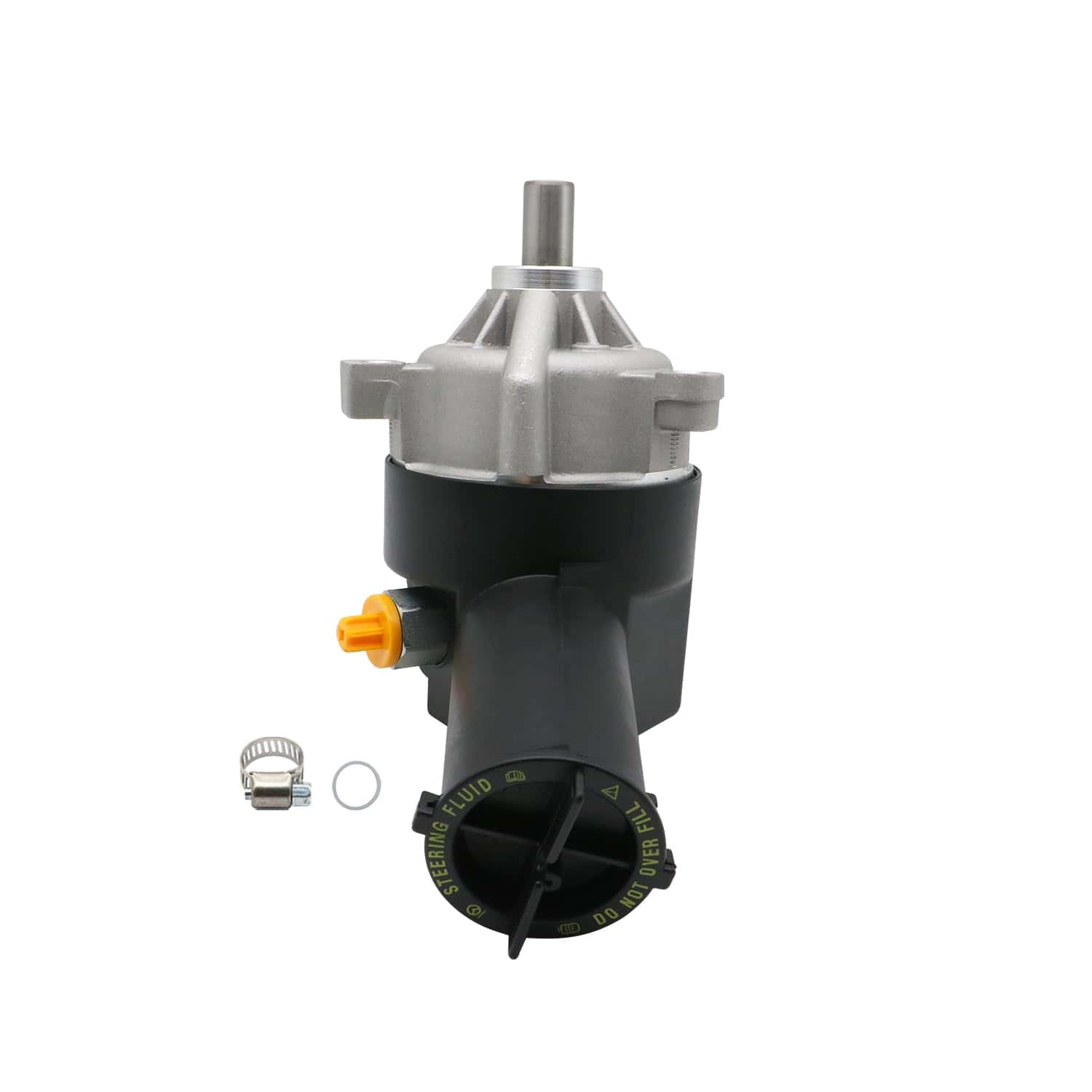 5. Paquete: Conjunto de bomba de dirección asistida 20-7272 con depósito, O-ring extra y abrazadera empaquetados en una caja de color.