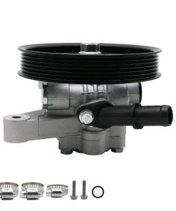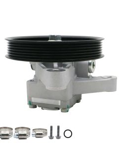 Bomba de dirección asistida 21-5442 con polea, O-ring y abrazadera extra empaquetados en una caja de color.
