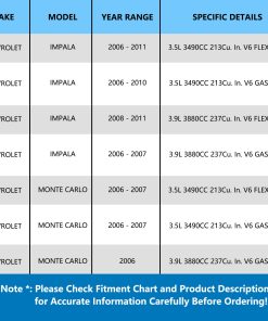 1. Compatibilidad con Vehículos: Esta Bomba de Dirección Asistida es compatible con Chevrolet Impala V6 3.5L 3.9L Sedan 2006 2007 2008 2009 2010 2011, Chevrolet Monte Carlo V6 3.5L 3.9L Coupe 2006 2007.