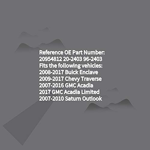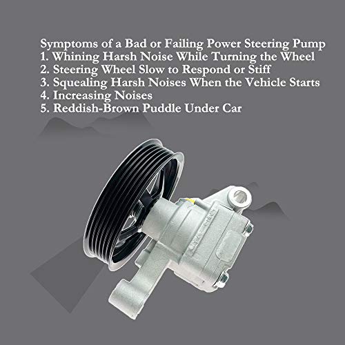 Síntomas de una Bomba de Dirección Asistida Defectuosa o Fallida: 1. Ruido chillón al girar el volante 2. Volante lento para responder o rígido 3. Ruidos chirriantes cuando el vehículo comienza 4. Ruidos gimiendo 5. Charco de color marrón rojizo bajo el auto Característica: Fabricado con material de alta calidad para una durabilidad duradera, asegurando un rendimiento máximo y una vida útil prolongada Reemplazo directo para un ajuste adecuado y una instalación fácil, materiales de calidad utilizados, cumple o supera los estándares OEM, 100% probado antes del envío La bomba de dirección asistida se utiliza para convertir la potencia en el líquido de dirección asistida desde el depósito en la caja de dirección y mantiene las ruedas en buen estado. Una vez que notes que las ruedas de tu vehículo funcionan de forma poco suave, el volante se resiste a responder, volante rígido y hace ruido fuerte, entonces necesitas revisar la bomba de dirección asistida y reemplazarla si está defectuosa Impulsado por el motor a través de un dispositivo de correa y polea, utiliza la hidráulica para empujar el fluido hacia la caja de dirección, ayudar a girar las ruedas de un vehículo. Número de parte OE de referencia: 20954812 20-2403 96-2403 Se adapta a los siguientes vehículos: Buick Enclave 2008-2017 Chevrolet Traverse 2009-2017 GMC Acadia 2007-2016 GMC Acadia Limited 2017 Saturn Outlook 2007-2010
