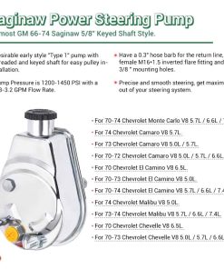 Se adapta a la mayoría de los modelos GM 66-74 con eje de polea de chaveta de 5/8″ Saginaw.