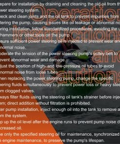 5. Una bomba de dirección asistida defectuosa puede obstaculizar significativamente su experiencia en bote. Puede hacer que la dirección se sienta pesada y menos receptiva, afectando el disfrute general y la seguridad de su tiempo en el agua. Al reemplazar su bomba antigua con nuestra alternativa de alto rendimiento, puede recuperar esa experiencia de dirección suave y sencilla. Esta bomba está diseñada para proporcionar asistencia fiable en la dirección asistida, asegurando que su bote responda de manera rápida y precisa a sus comandos.