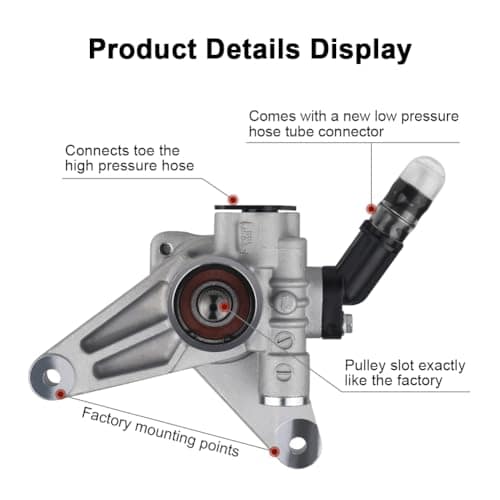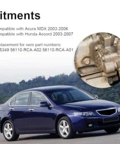 Se ajusta a los siguientes vehículos: Para la bomba de dirección asistida de Acura MDX 2003 2004 2005 2006, para la bomba de dirección asistida de Honda Accord 2003 2004 2005 2006 2007. Números de parte OEM: 21-5349, 56110-RCA-A01, 56110-RCA-A02, 56110-RDJ-A01, 56110-RDJ-A02. Otros números de parte: 06561-RDJ-505RM. El paquete incluye: 1 bomba de dirección asistida, 1 par de guantes.
