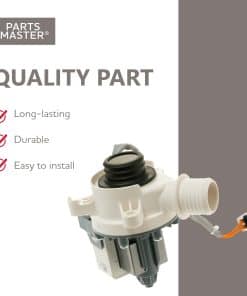Reemplazo de Parts Master para la Bomba de Drenaje de Lavadora GE/Hotpoint WH23X28418 PS12723115 AP6889136. Esta es una solución común para problemas de drenaje en lavadoras y también aborda las fugas que pueden ocurrir en la bomba de drenaje. Esta bomba de drenaje es un reemplazo comparable para varios modelos de GE/Hotpoint y se recomienda verificar la compatibilidad con tu modelo específico. Se incluye una garantía limitada de 1 año para mayor tranquilidad. Parts Master se dedica a proporcionar piezas de repuesto de calidad para garantizar un funcionamiento confiable y duradero de tus electrodomésticos de cocina y lavandería