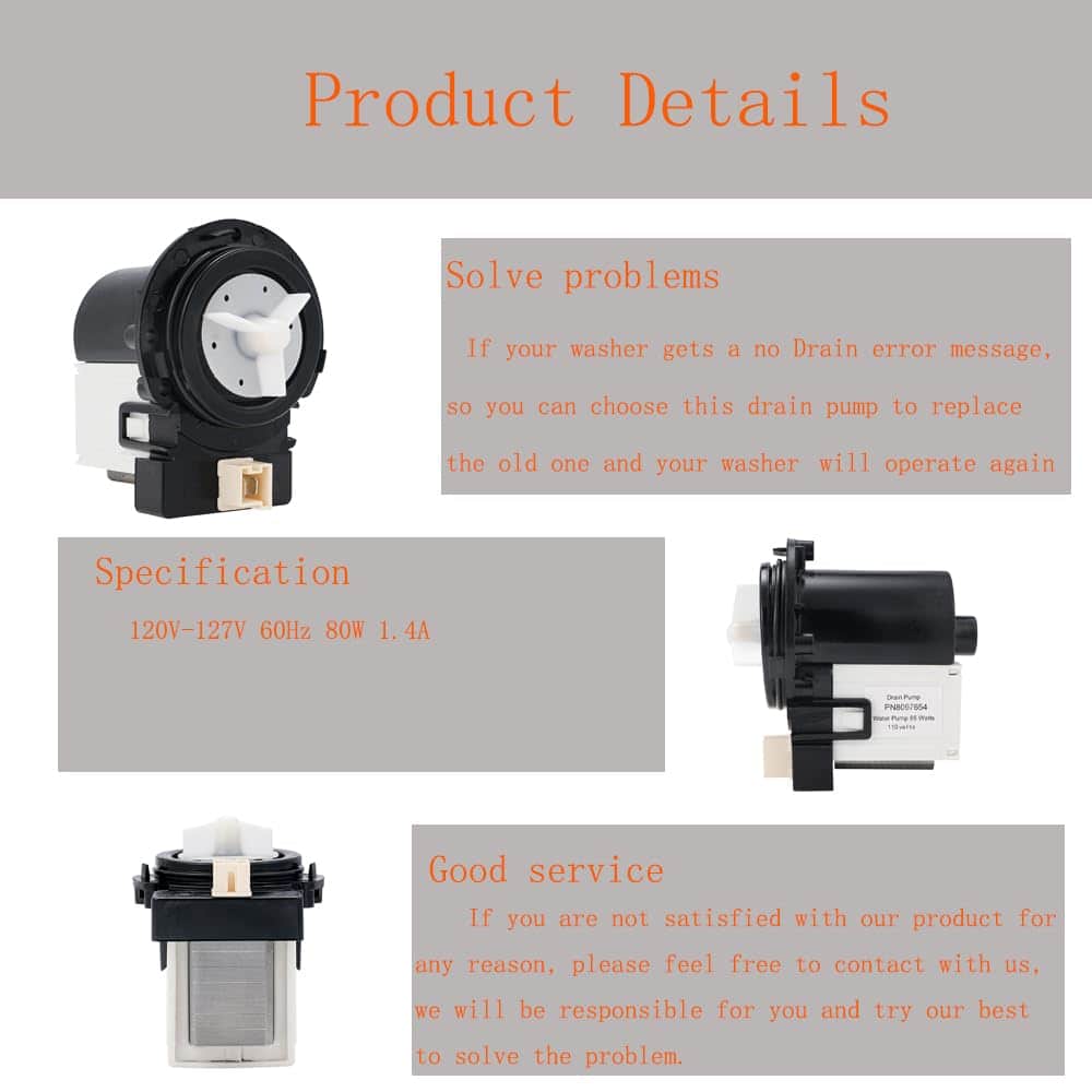 Bomba de Drenaje para Lavadora Sumsung WF448AAP/XAA, WF210ANW/XAA, WF220ANW/XAA, WF328AAW/XAA, WF448AAW/XAA, WF218ANW/XAA, WF330ANW/XAA, WF337AAG/XAA, WF350ANW/XAA,WF209ANW/XAA DC31-00054A Reemplazo