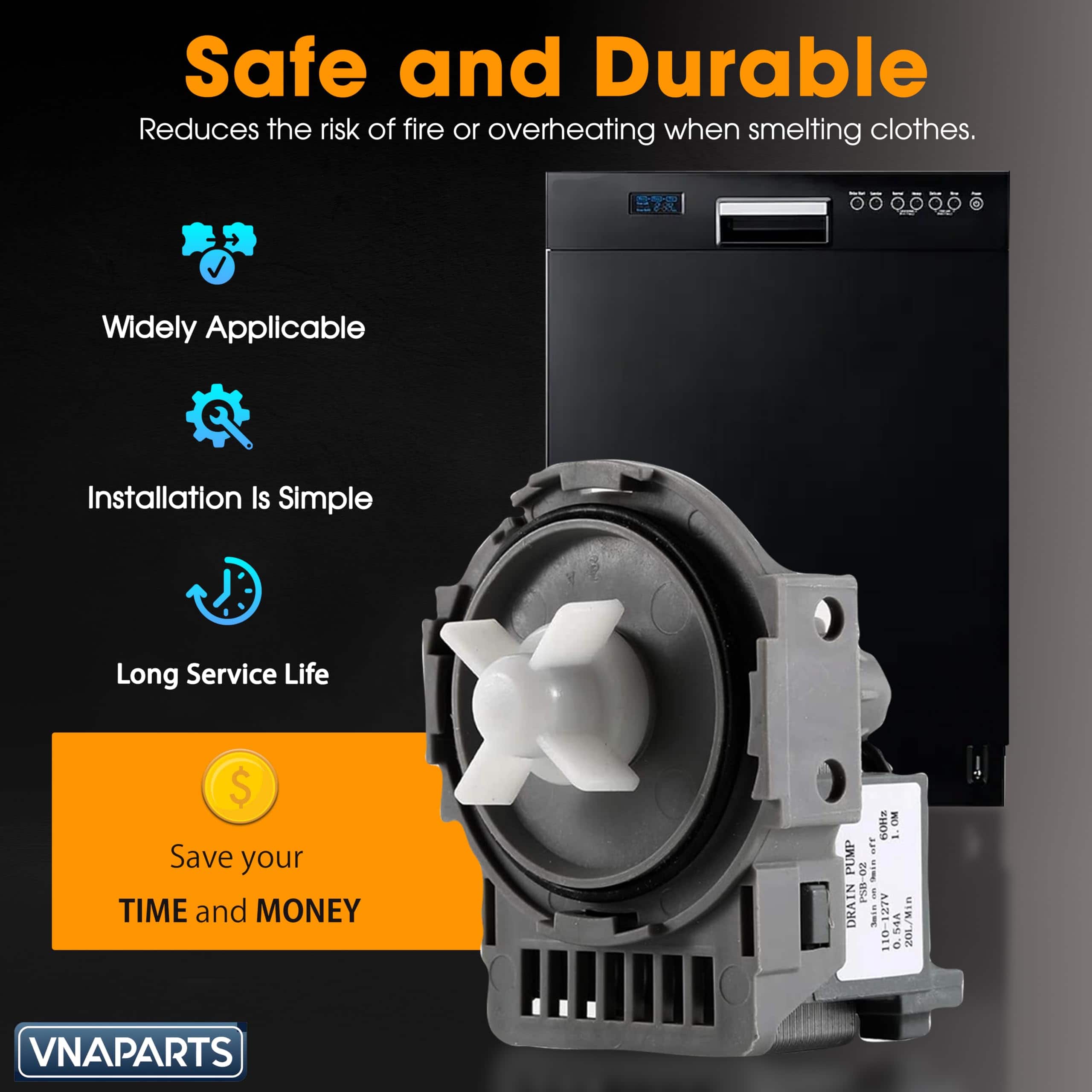 Drenaje eficiente: Esta bomba de drenaje elimina efectivamente el agua de su lavavajillas, eliminando problemas como agua estancada, fugas y drenaje lento.